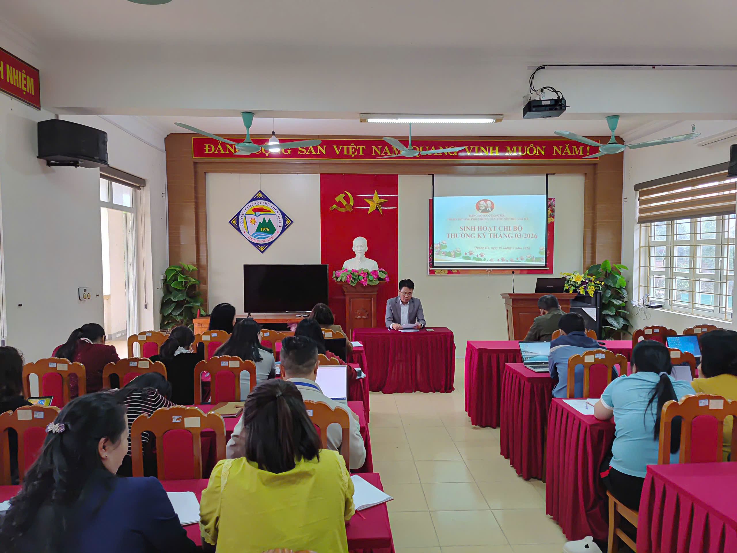 Thực hiện chương trình công tác năm 2026, Chi bộ Trường PTDT Nội trú THCS Hải Hà đã tổ chức Sinh hoạt chuyên đề Quý I với nội dung: “Học tập và làm theo tư tưởng, đạo đức, phong cách Hồ Chí Minh về phát triển kinh tế gắn liền với bảo đảm an sinh xã hội, nâng cao đời sống nhân dân”, kết hợp sinh hoạt thường kỳ tháng 3/2026.