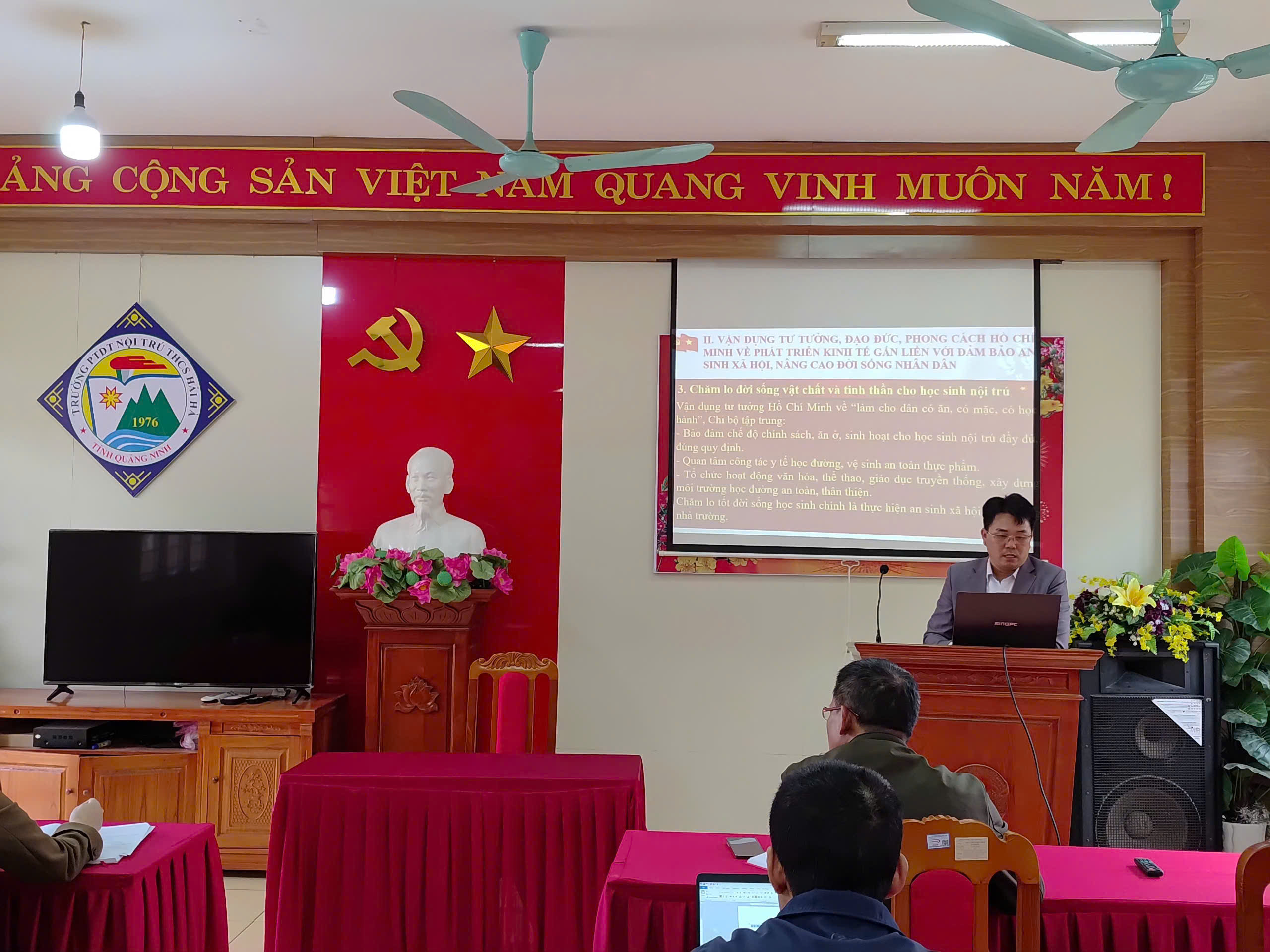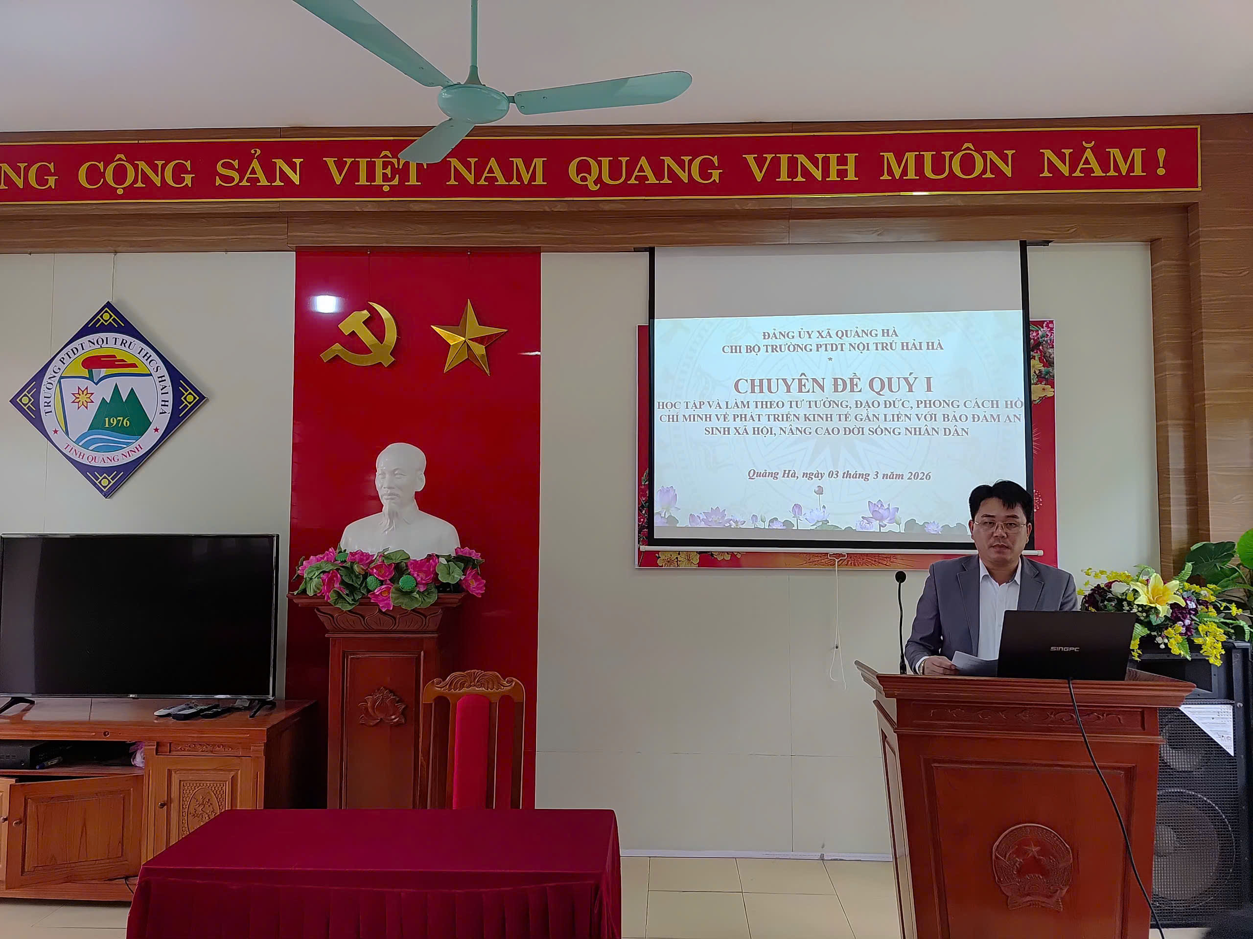Thực hiện chương trình công tác năm 2026, Chi bộ Trường PTDT Nội trú THCS Hải Hà đã tổ chức Sinh hoạt chuyên đề Quý I với nội dung: “Học tập và làm theo tư tưởng, đạo đức, phong cách Hồ Chí Minh về phát triển kinh tế gắn liền với bảo đảm an sinh xã hội, nâng cao đời sống nhân dân”, kết hợp sinh hoạt thường kỳ tháng 3/2026.