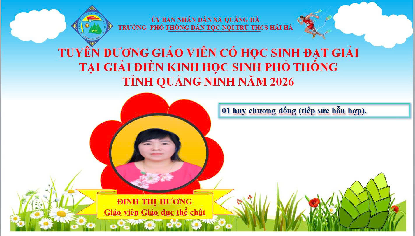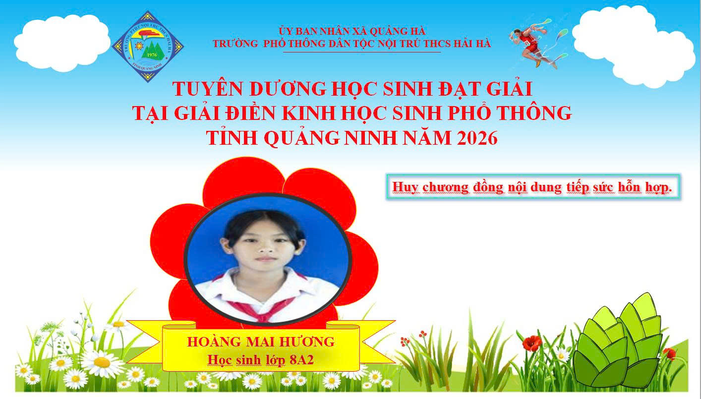 Nhà trường xin nhiệt liệt chúc mừng em Hoàng Mai Hương – học sinh lớp 8A2 đã xuất sắc đạt Giải Ba nội dung tiếp sức hỗn hợp tại Giải Điền kinh học sinh tỉnh Quảng Ninh năm 2026.