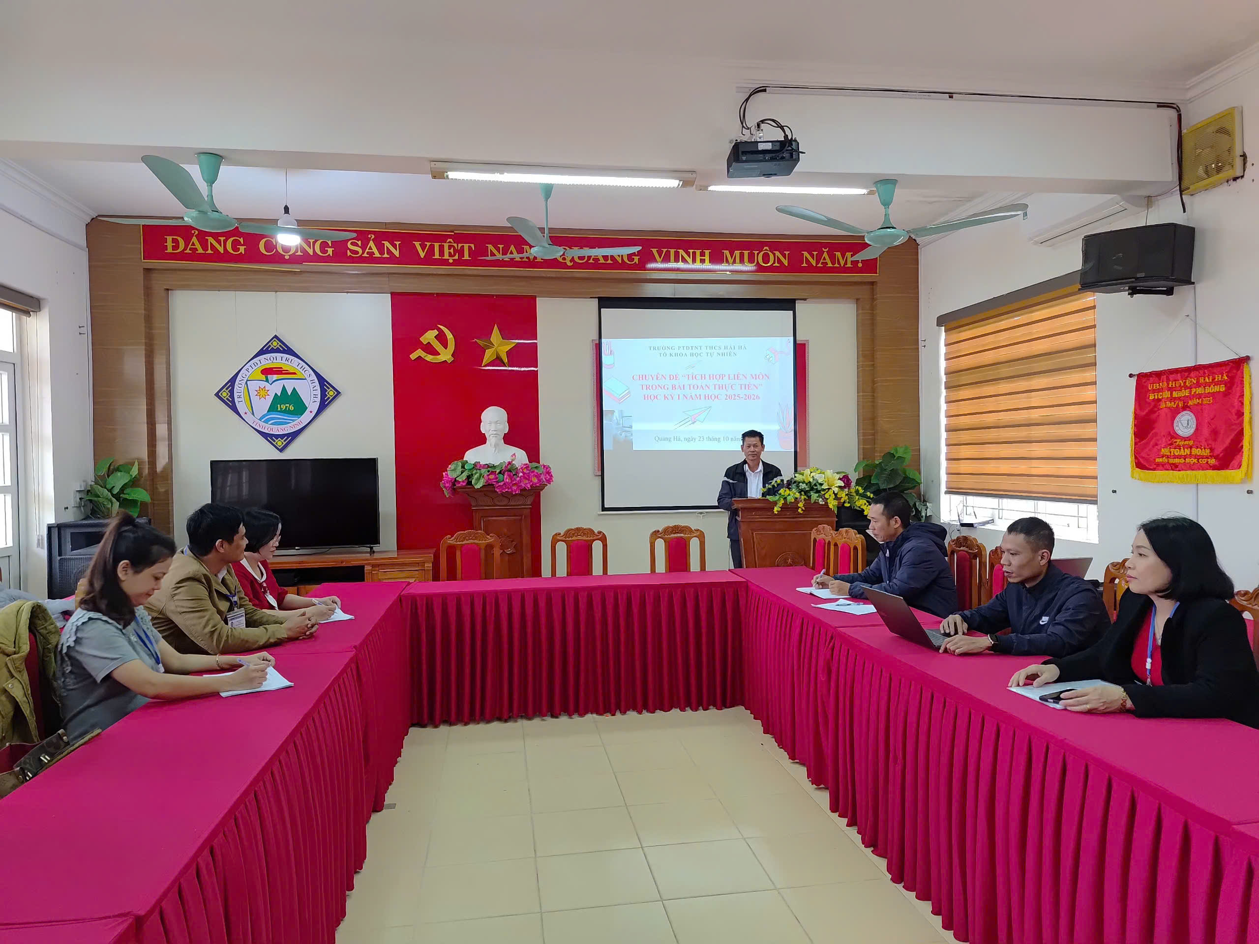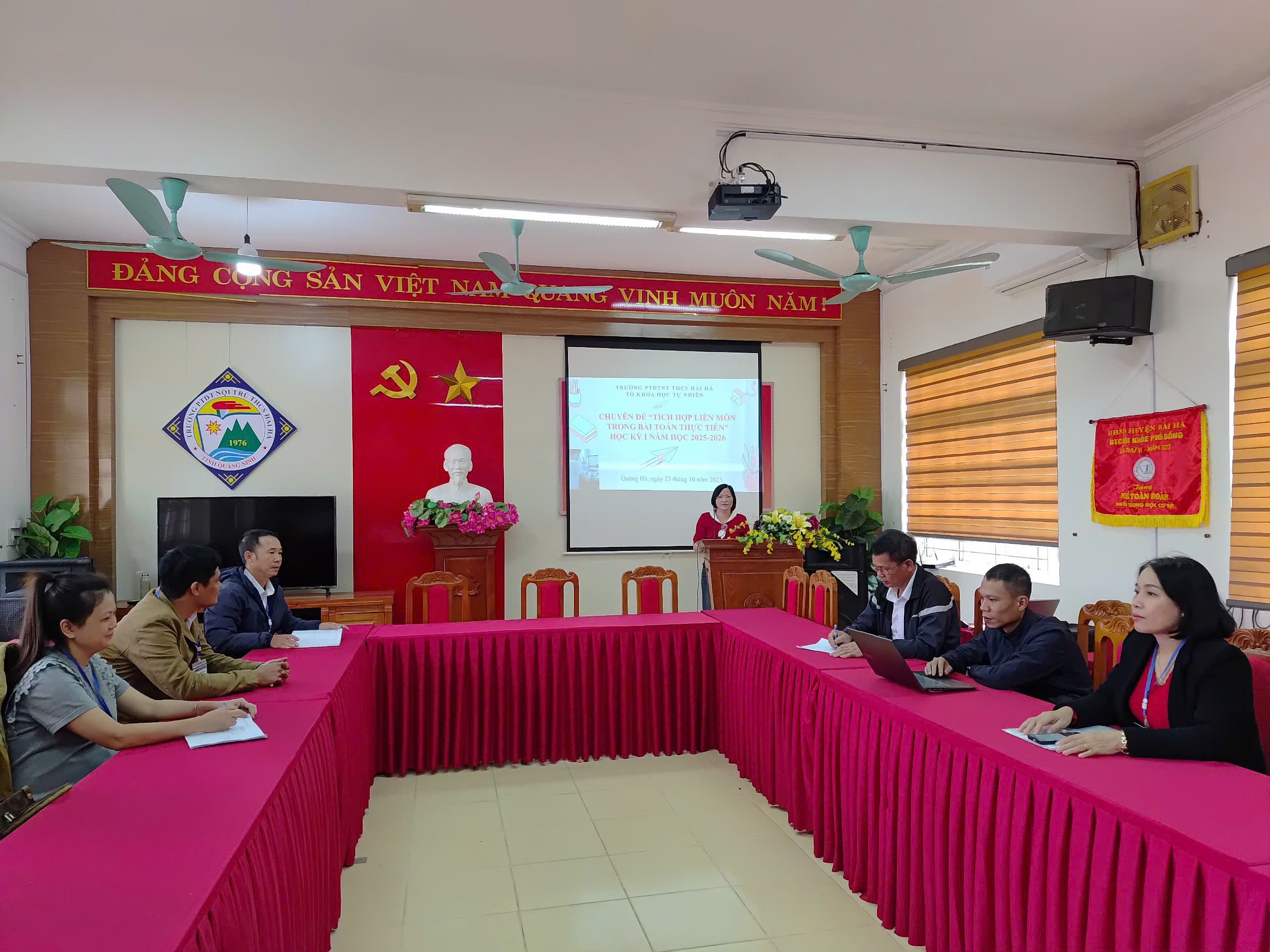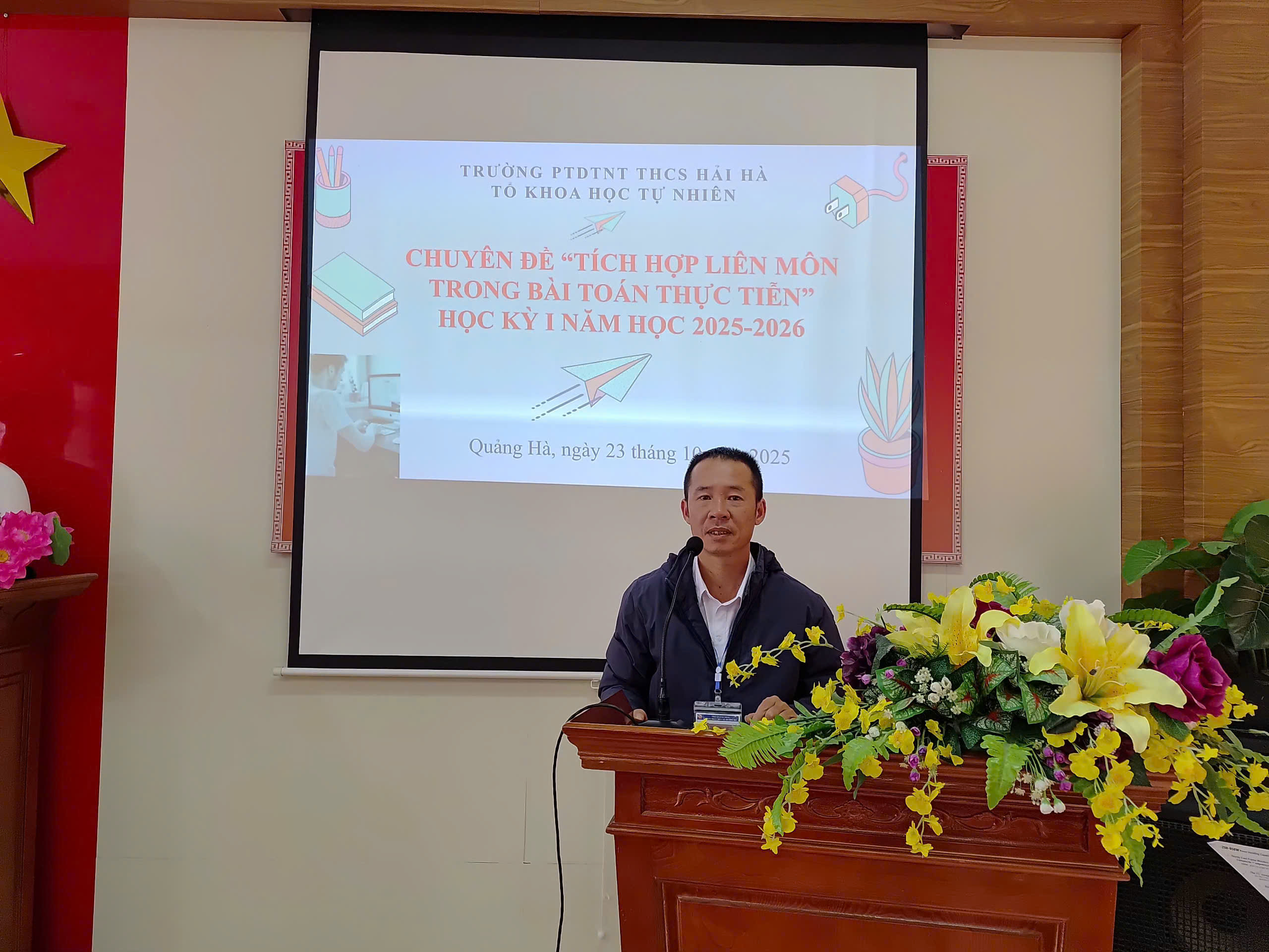 Chiều ngày 23/10/2025, Tổ KHTN trường PTDT nội trú THCS Hải Hà tổ chức sinh hoạt chuyên đề bộ môn Toán. Giáo viên dạy minh hoạ: Đinh Khắc Ba, với sự tham gia của các thành viên Tổ KHTN trường PTDT nội trú THCS Hải Hà. Thông qua tiết dạy, giáo viên tham dự đã rút ra được một số kinh nghiệm tổ chức dạy học hoạt động tích hợp liên môn trong bài toán thực tiễn, góp phần nâng cao chất lượng dạy học bộ môn Toán, phát huy được tính tích cực, chủ động của học sinh, đáp ứng yêu cầu chương trình giáo dục phổ thông 2018.