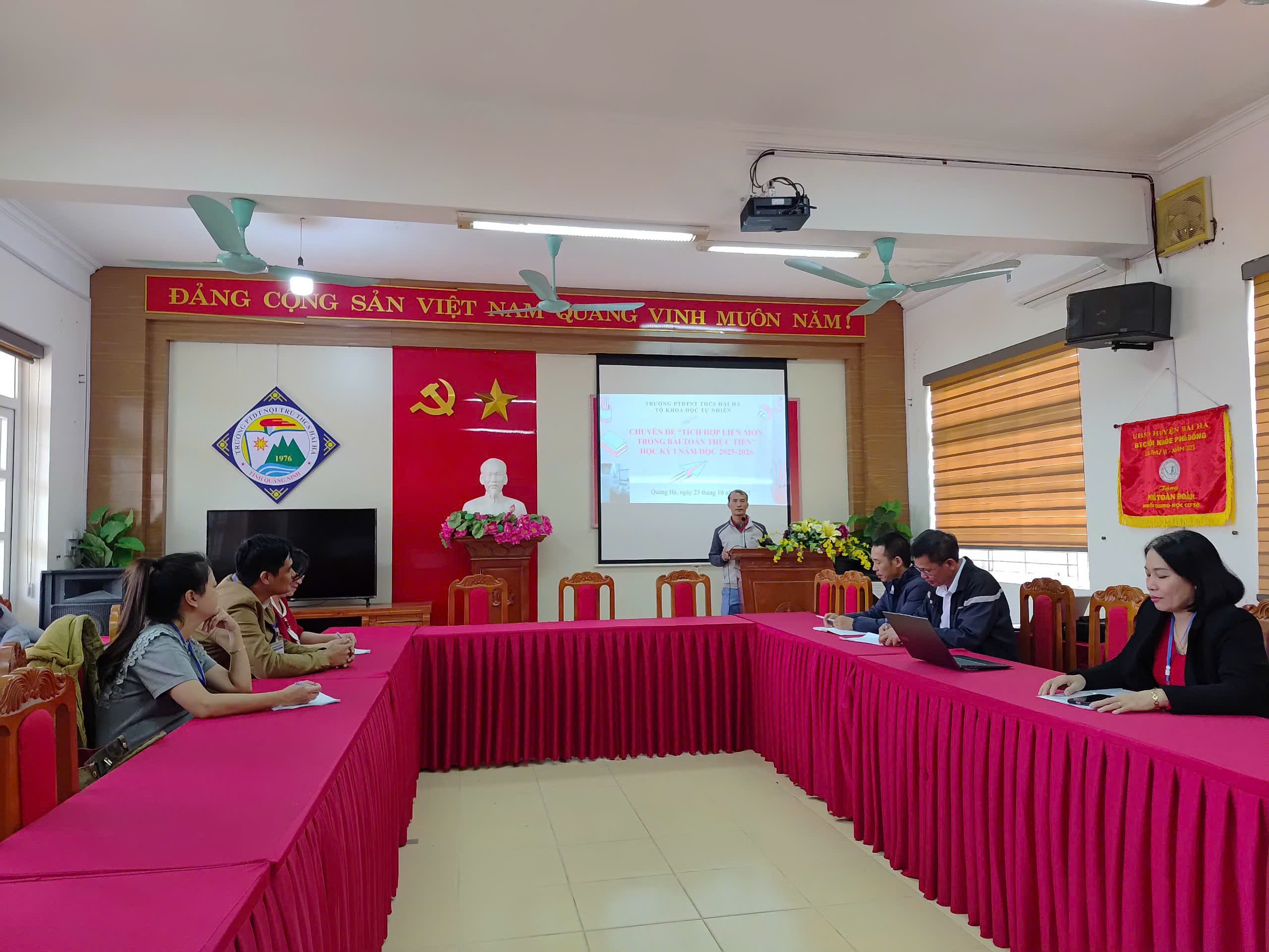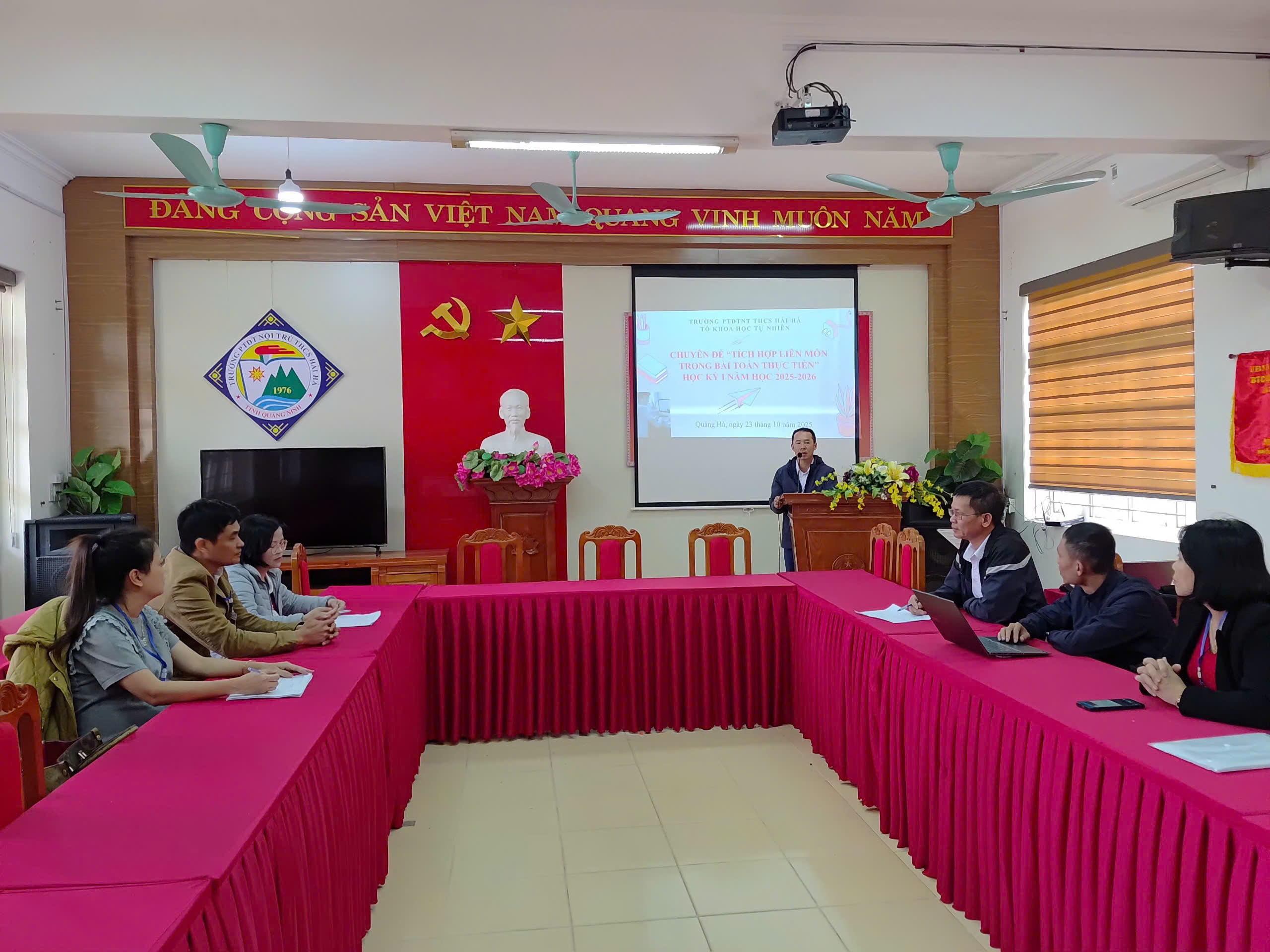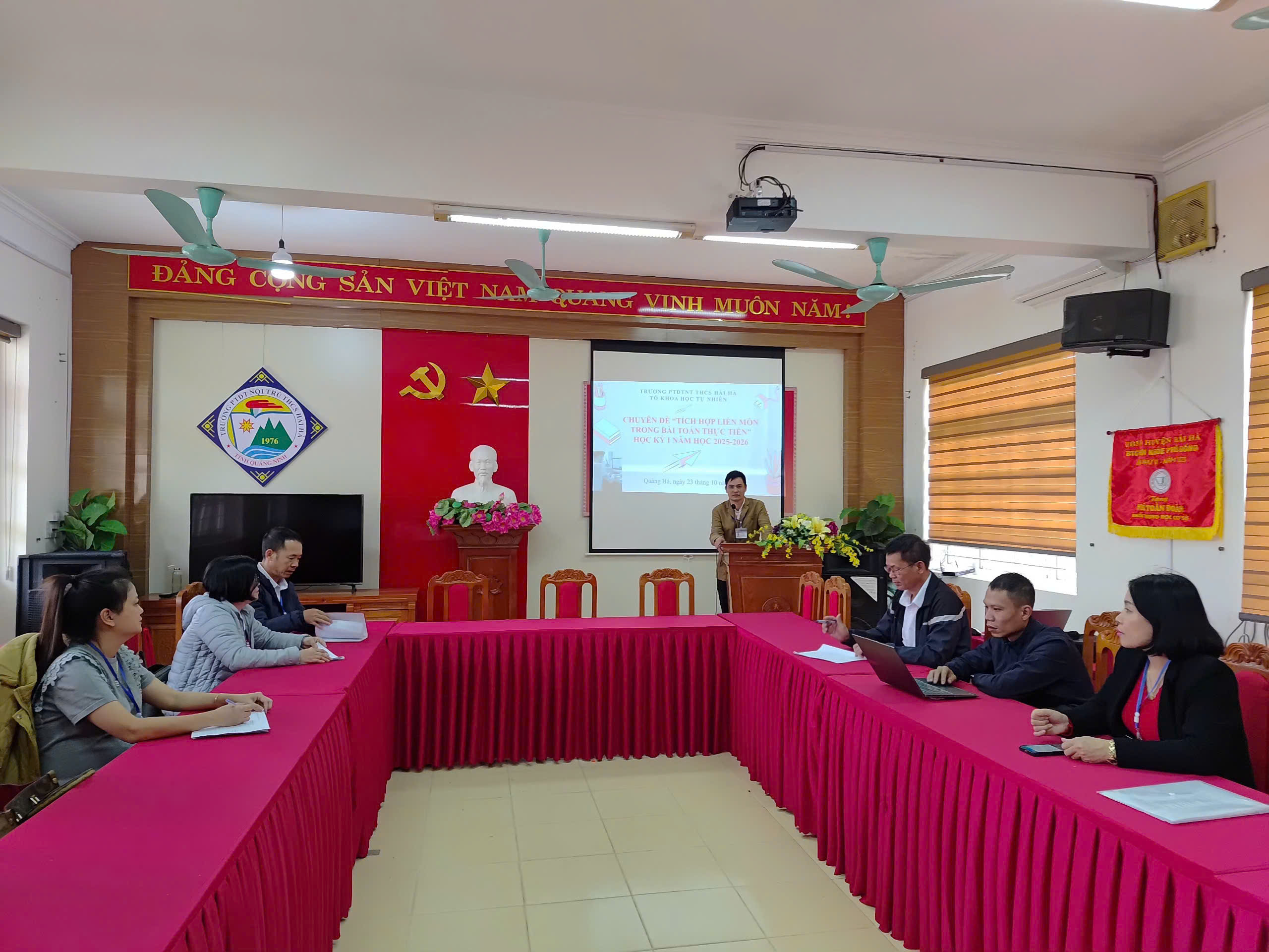 Chiều ngày 23/10/2025, Tổ KHTN trường PTDT nội trú THCS Hải Hà tổ chức sinh hoạt chuyên đề bộ môn Toán. Giáo viên dạy minh hoạ: Đinh Khắc Ba, với sự tham gia của các thành viên Tổ KHTN trường PTDT nội trú THCS Hải Hà. Thông qua tiết dạy, giáo viên tham dự đã rút ra được một số kinh nghiệm tổ chức dạy học hoạt động tích hợp liên môn trong bài toán thực tiễn, góp phần nâng cao chất lượng dạy học bộ môn Toán, phát huy được tính tích cực, chủ động của học sinh, đáp ứng yêu cầu chương trình giáo dục phổ thông 2018.
