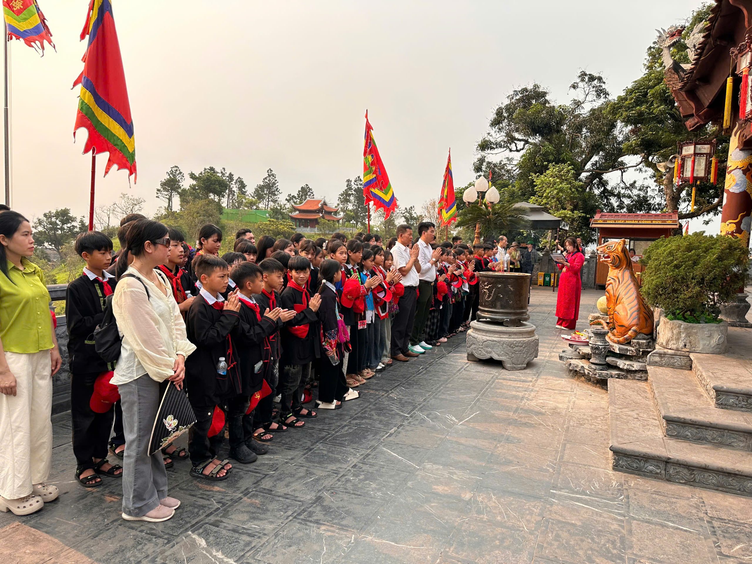Tại Đền Cửa Ông, các em đã được dâng hương, nghe thuyết minh về lịch sử, qua đó giáo dục truyền thống “Uống nước nhớ nguồn”, bồi đắp lòng tự hào dân tộc.