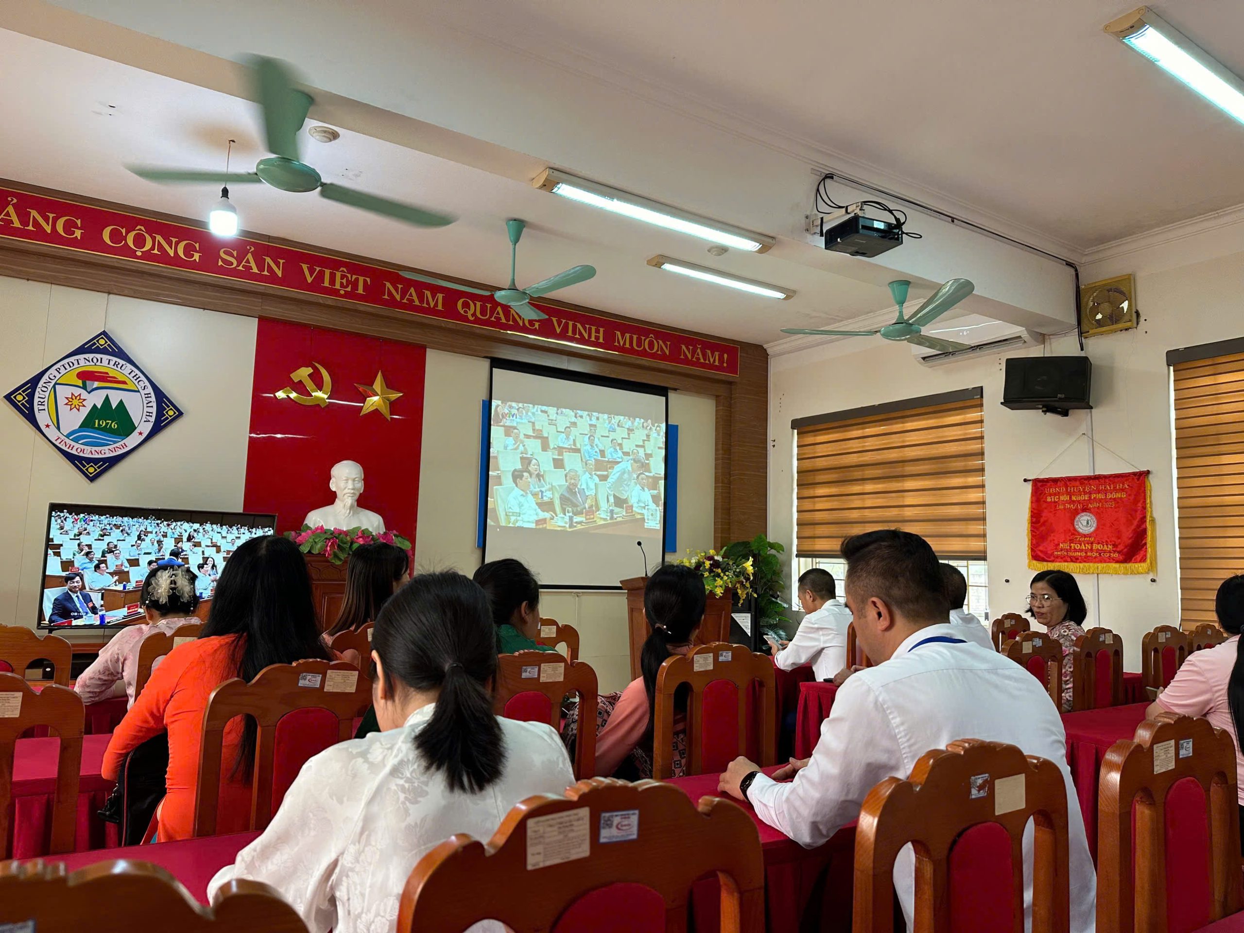Sáng ngày 13/4/2026, Bộ Chính trị, Ban Bí thư Trung ương Đảng tổ chức Hội nghị toàn quốc nghiên cứu, học tập, quán triệt và triển khai thực hiện Nghị quyết Hội nghị lần thứ hai Ban chấp hành Trung ương Đảng khoá XIV. Chi bộ Trường PTDT nội trú Hải Hà tham dự Hội nghị bằng hình thức trực tuyến qua kênh VTV1, Đài truyền hình Việt Nam.