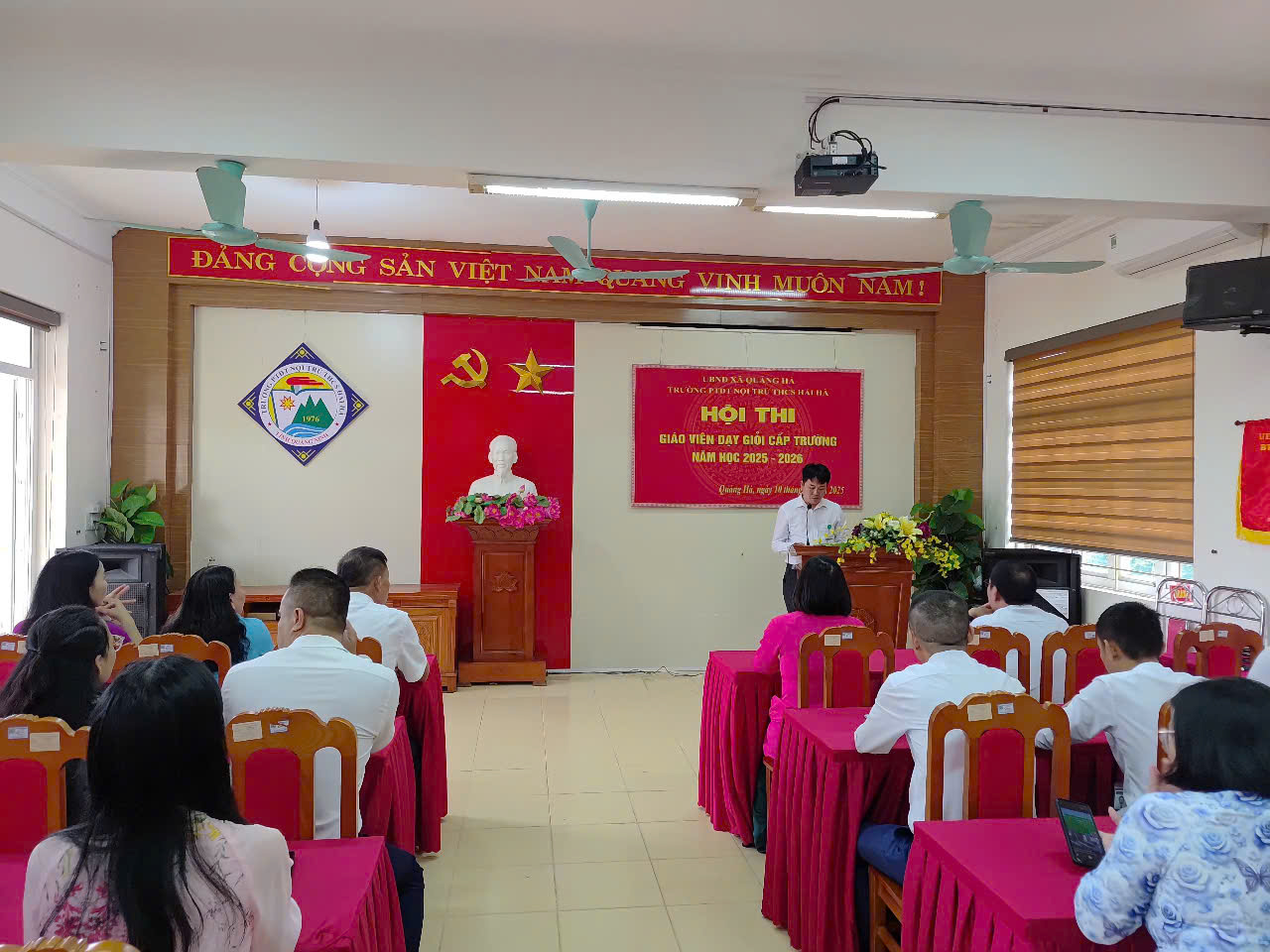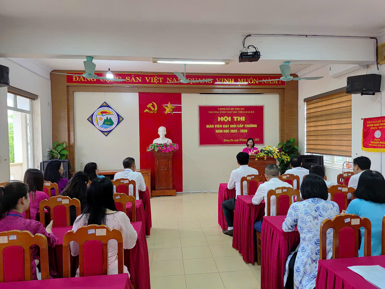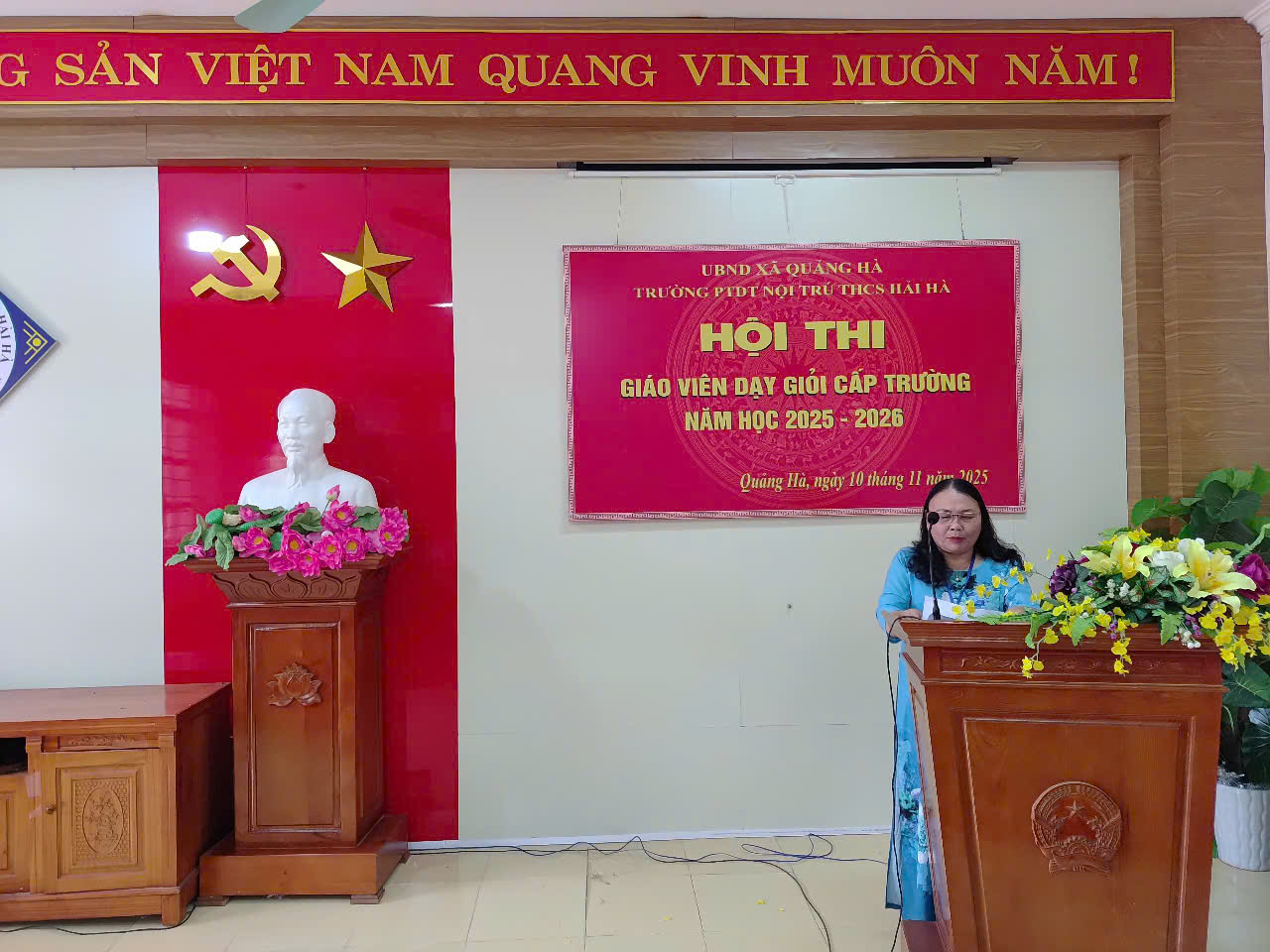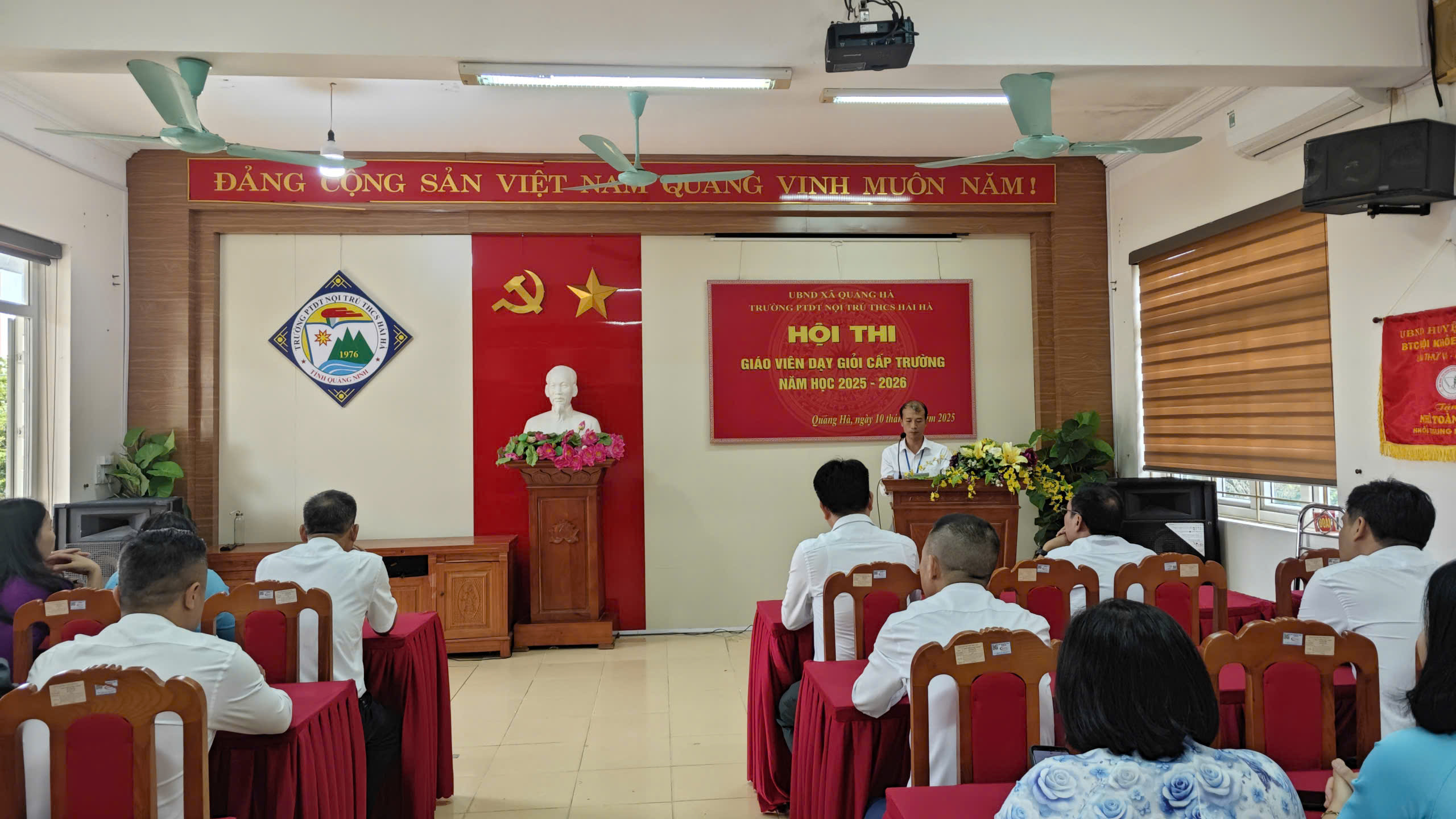 Thực hiện thực hiện chủ đề năm học của Ngành giáo dục, thực hiện Kế hoạch giáo dục nhà trường năm học 2025-2026, nhằm tiếp tục đẩy mạnh và phát huy hiệu quả phong trào thi đua “Dạy tốt, học tốt”, phong trào “Đổi mới, sáng tạo trong quản lý, giảng dạy và học tập”, hướng đến thi đua lập thành tích kỷ niệm 43 năm Ngày Nhà giáo Việt Nam (20/11/1982-20/11/2025). Sáng ngày 10/11/2025, trường PTDT nội trú THCS Hải Hà tổ chức Khai mạc hội thi GVDG cấp trường.