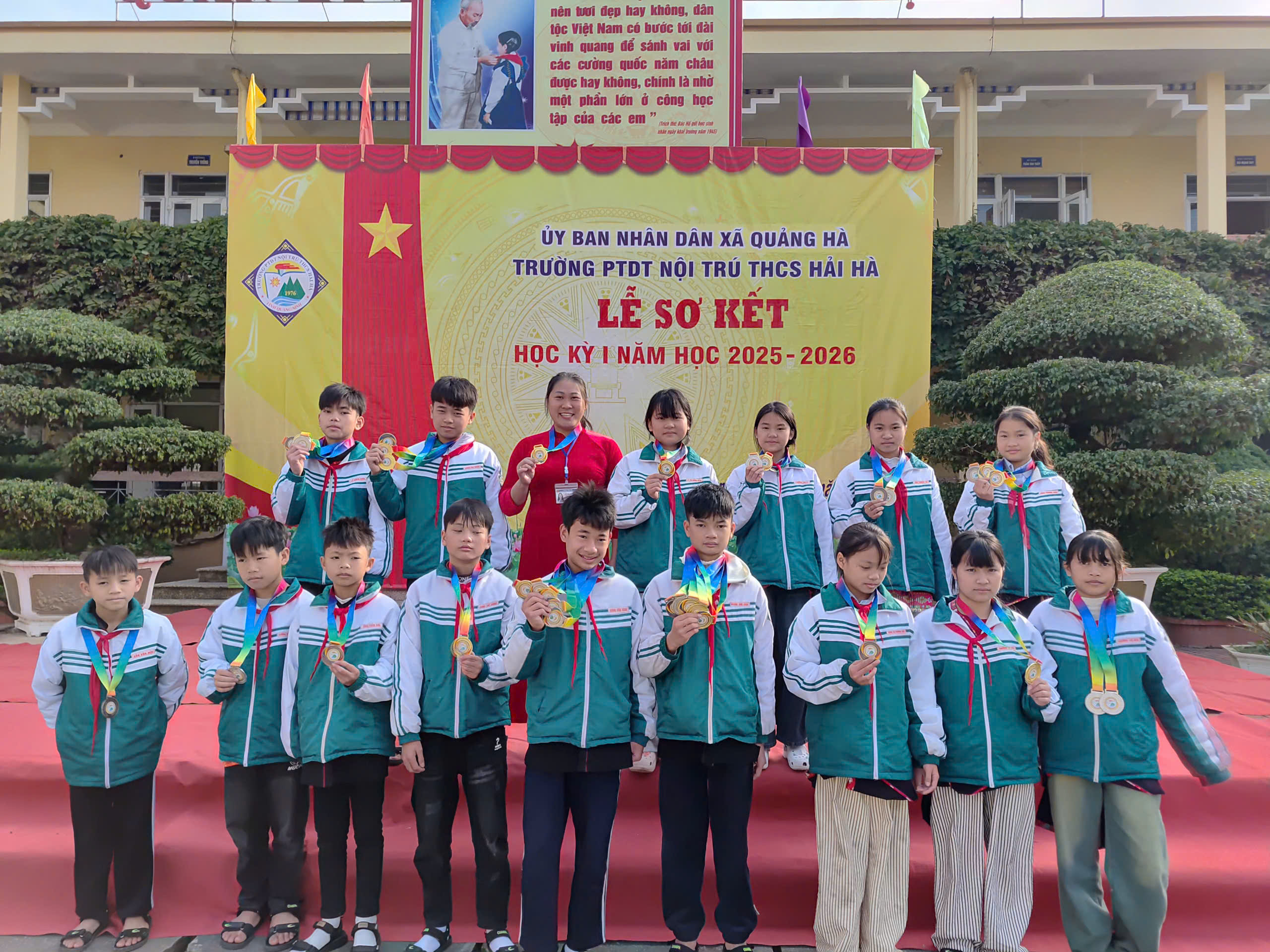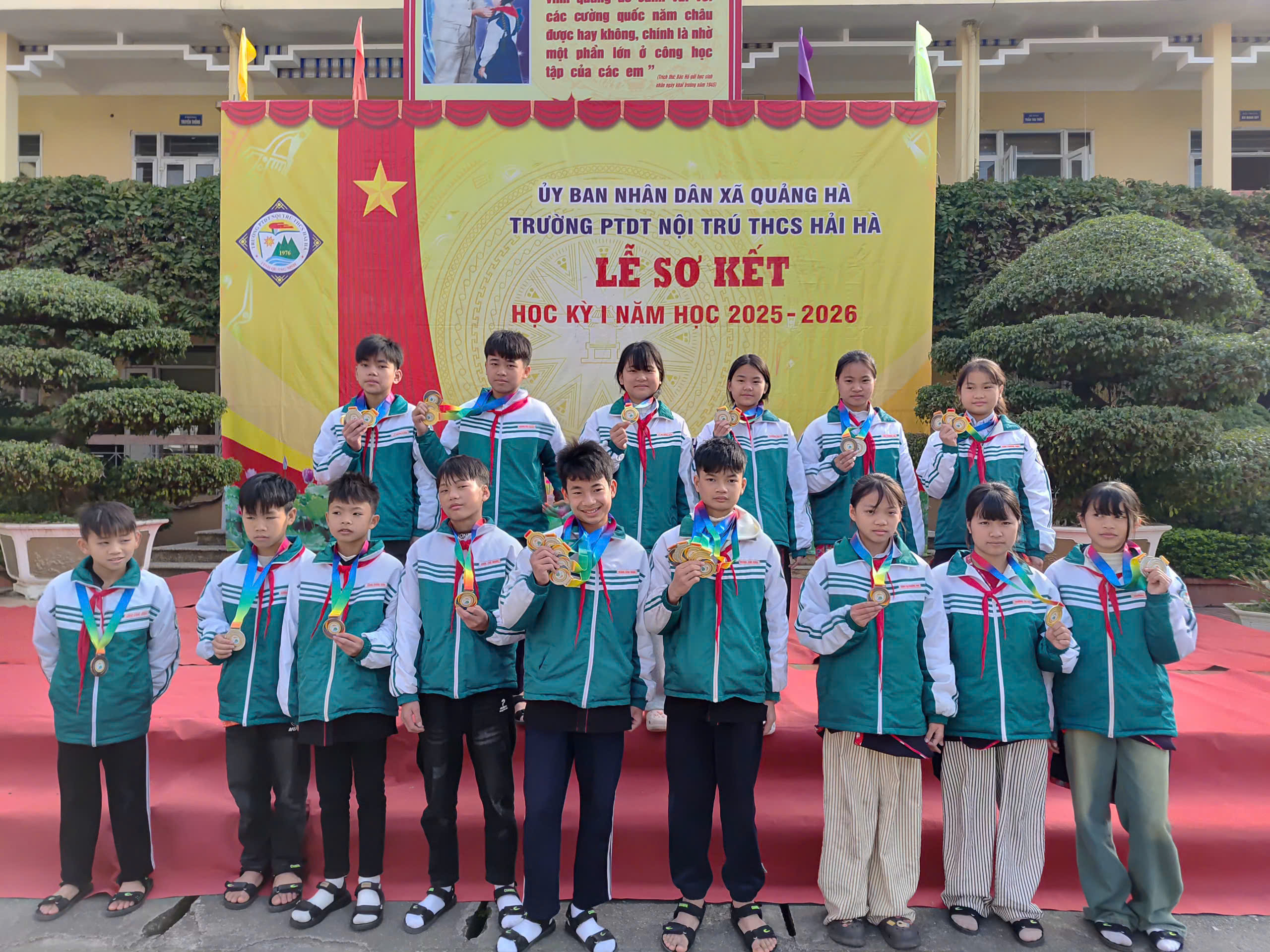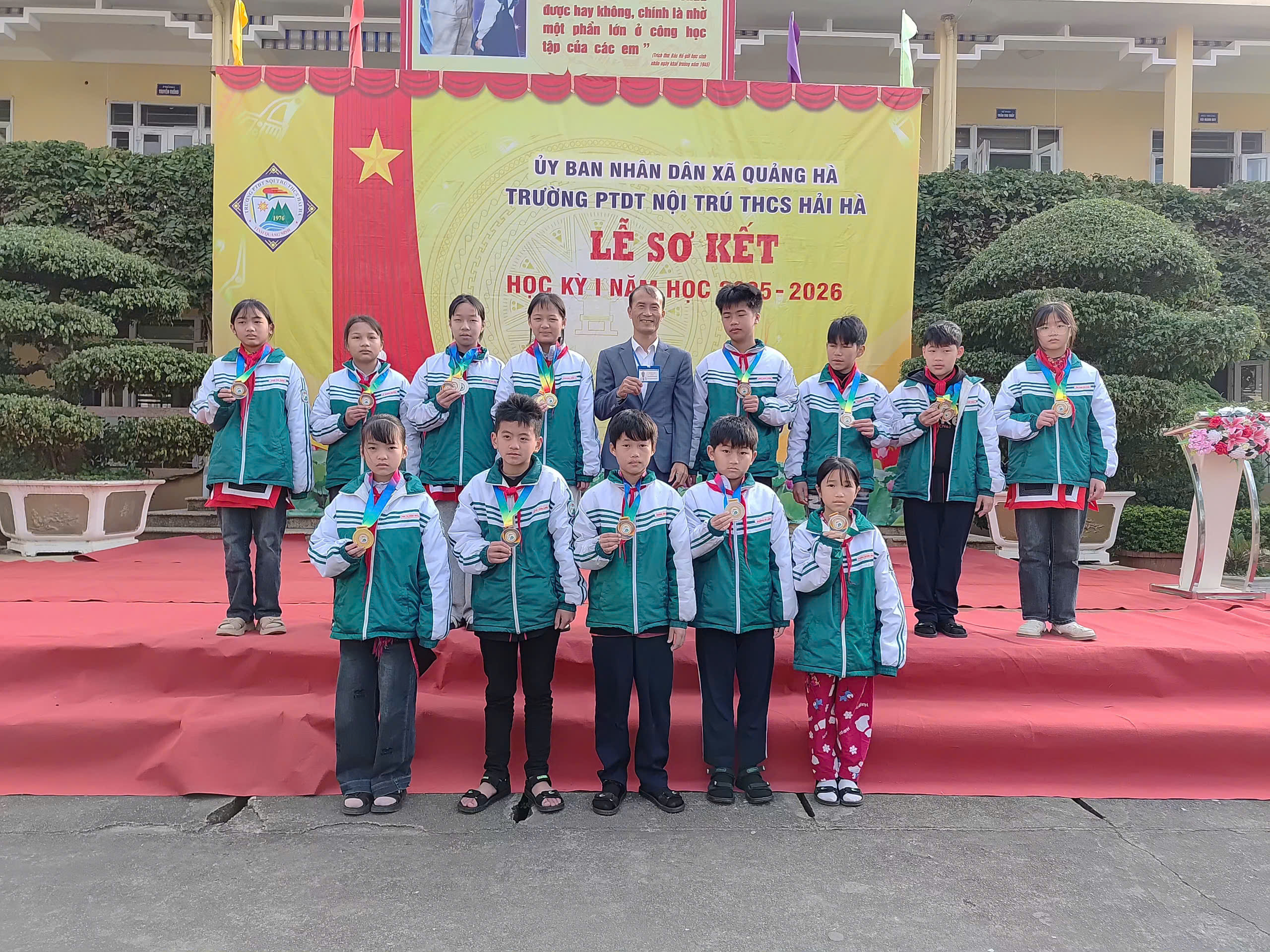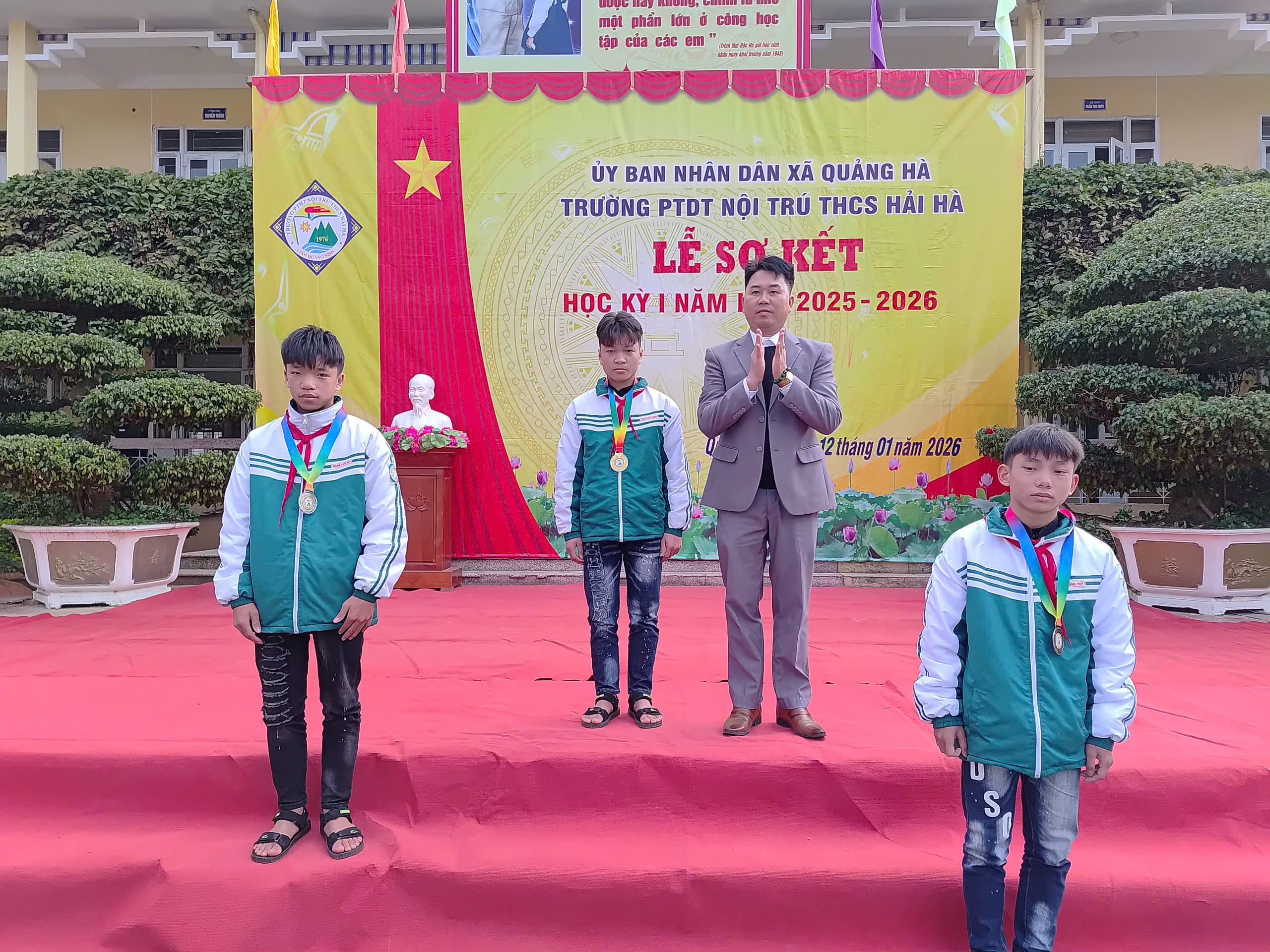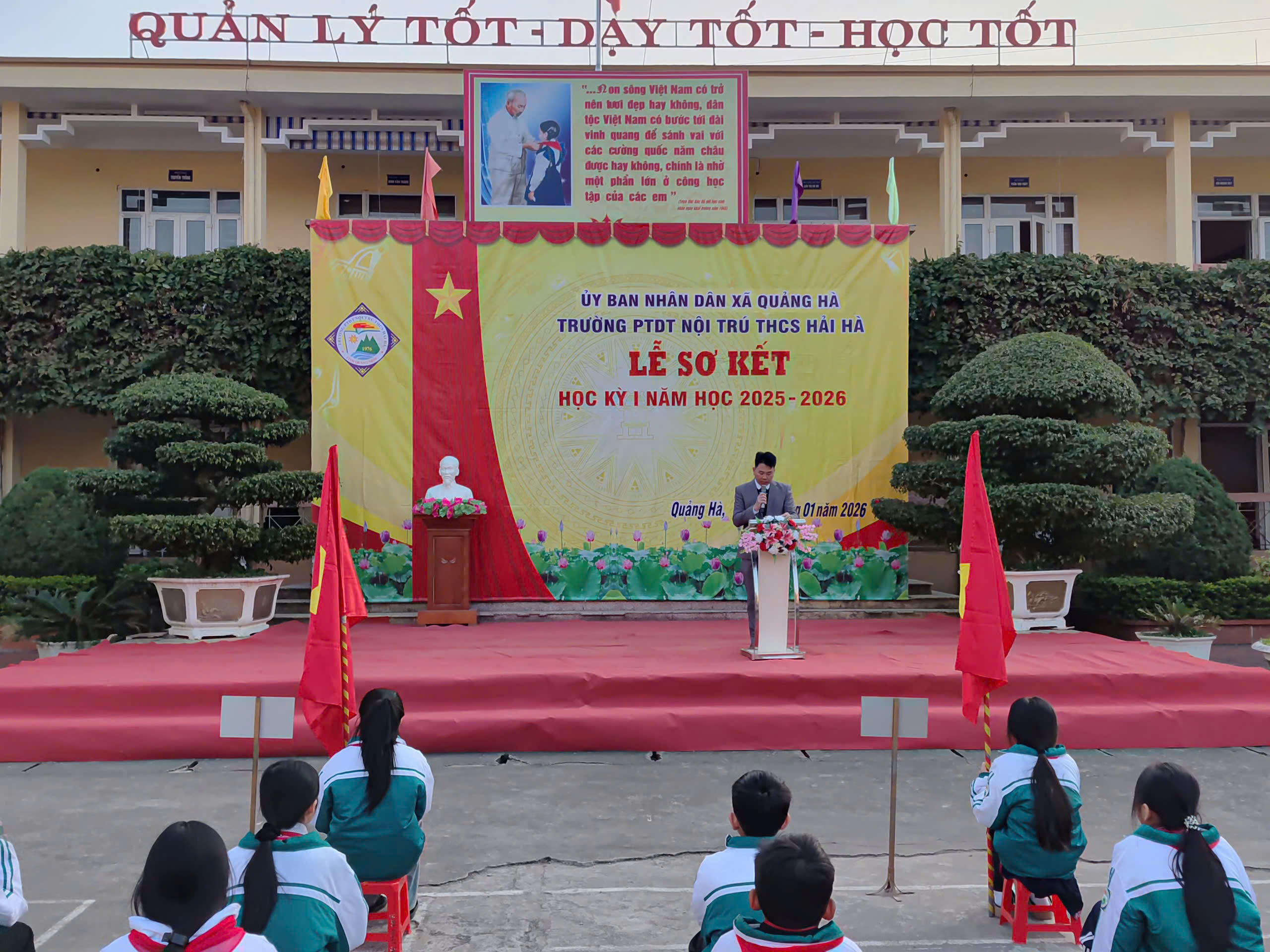 Sáng nay, ngày 12/01/2026, trong không khí se lạnh nhưng đầy nhiệt huyết của những ngày đầu năm mới, Trường PTDT Nội trú THCS Hải Hà đã long trọng tổ chức Lễ Sơ kết học kỳ I năm học 2025 – 2026.