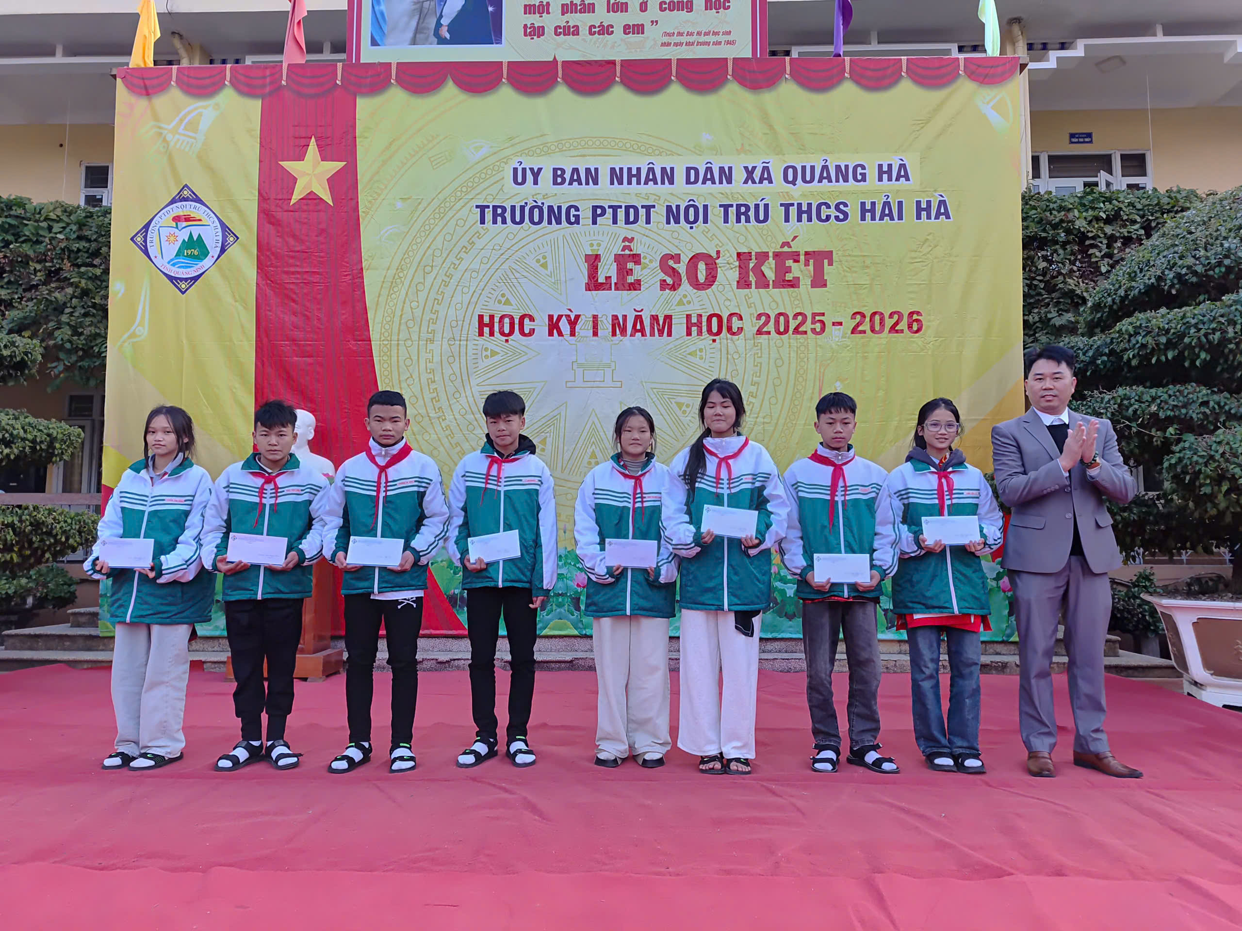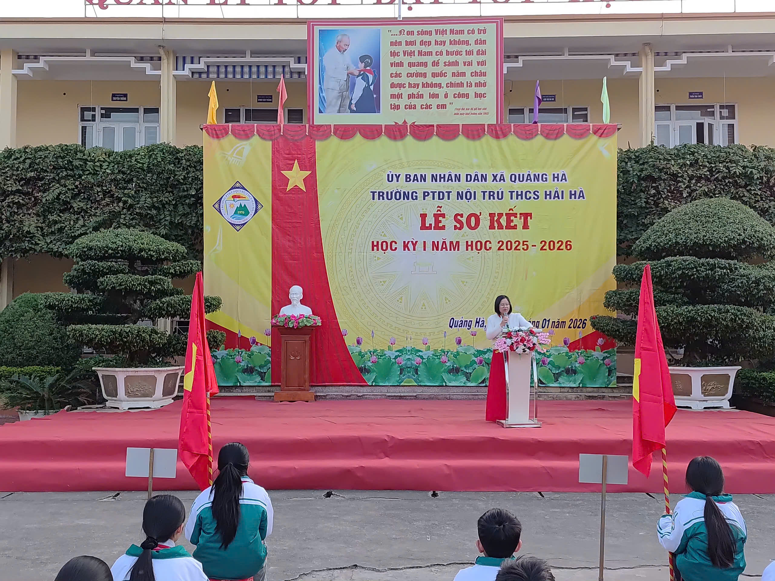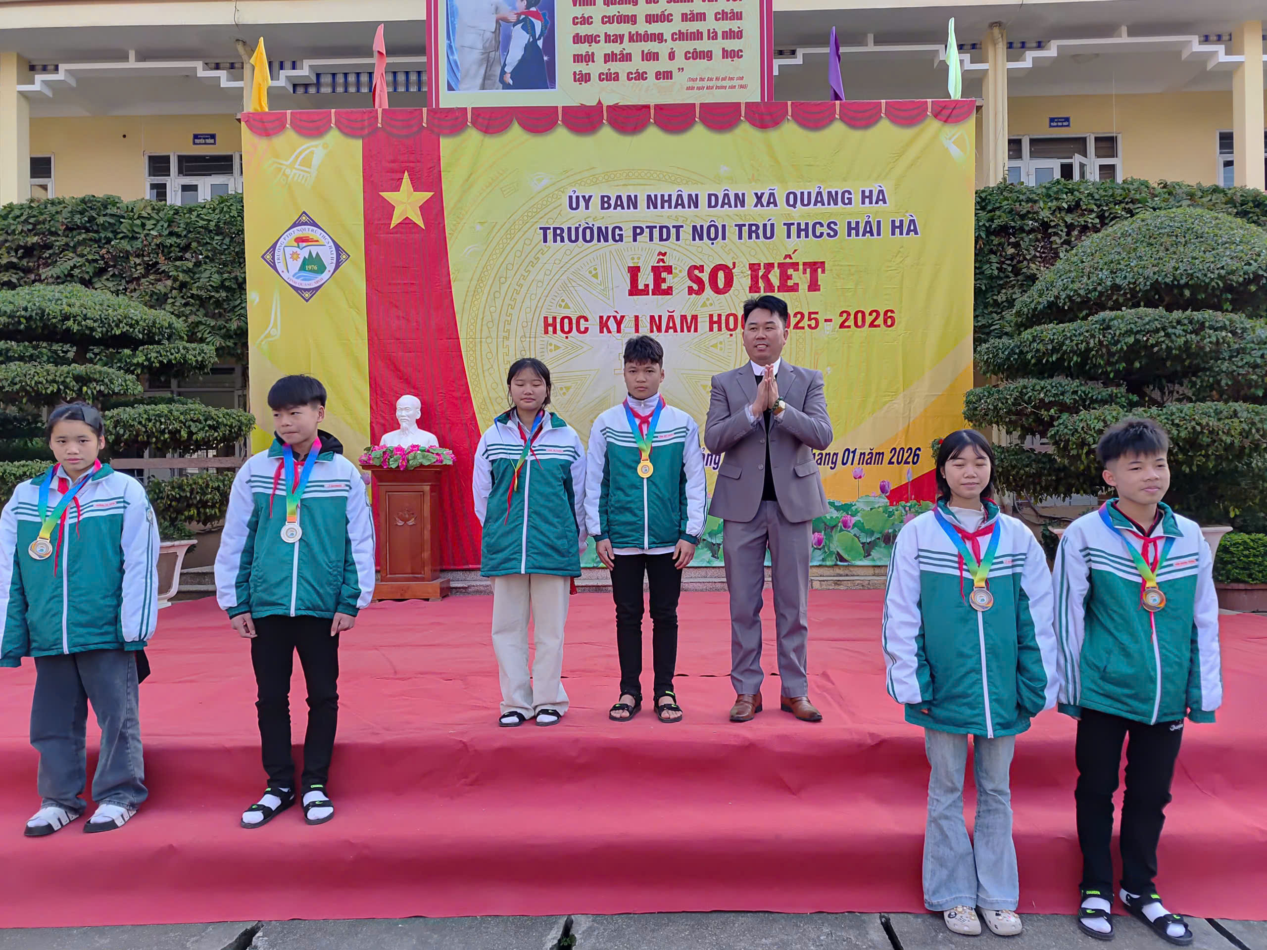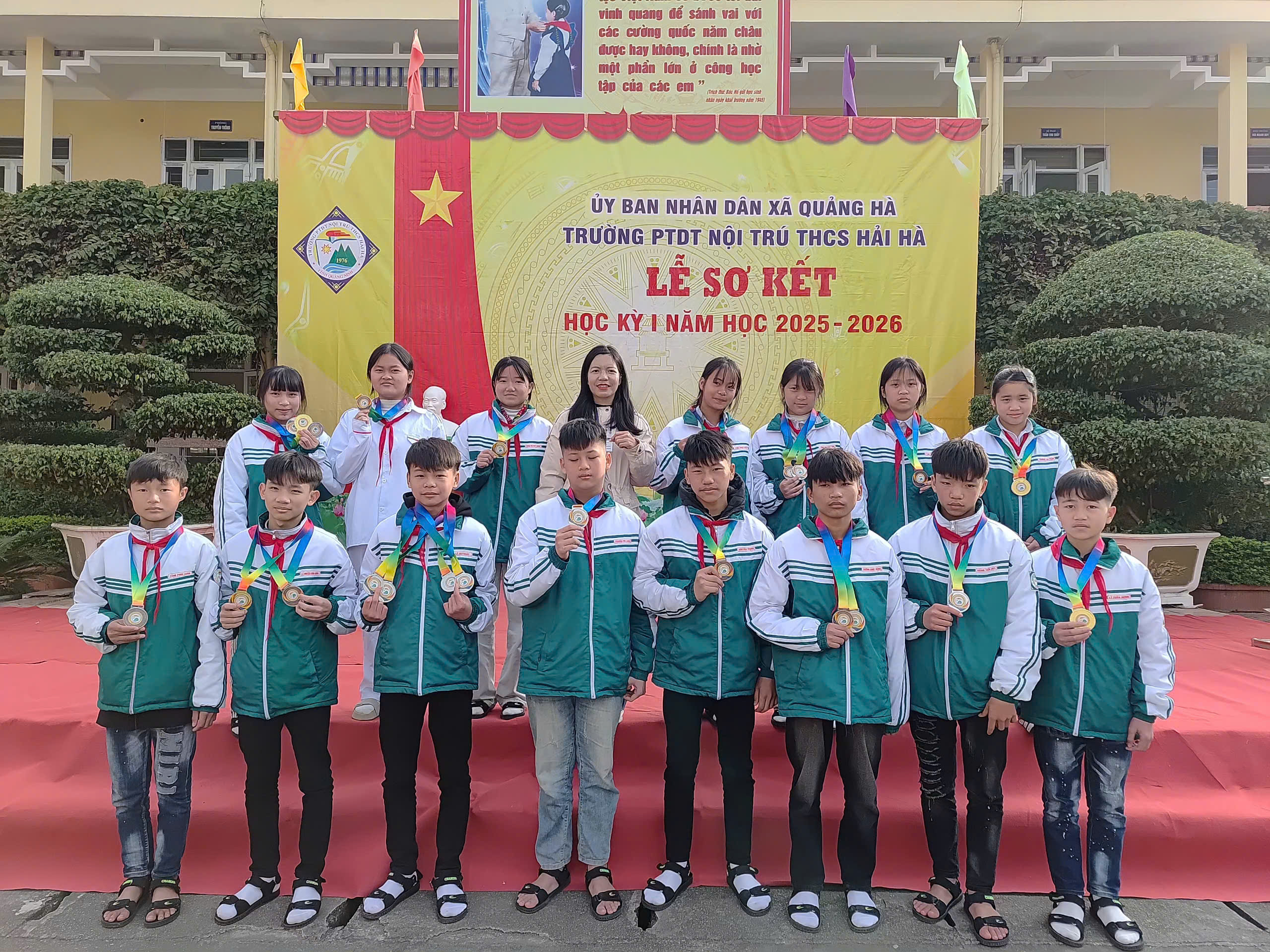 Sáng nay, ngày 12/01/2026, trong không khí se lạnh nhưng đầy nhiệt huyết của những ngày đầu năm mới, Trường PTDT Nội trú THCS Hải Hà đã long trọng tổ chức Lễ Sơ kết học kỳ I năm học 2025 – 2026.