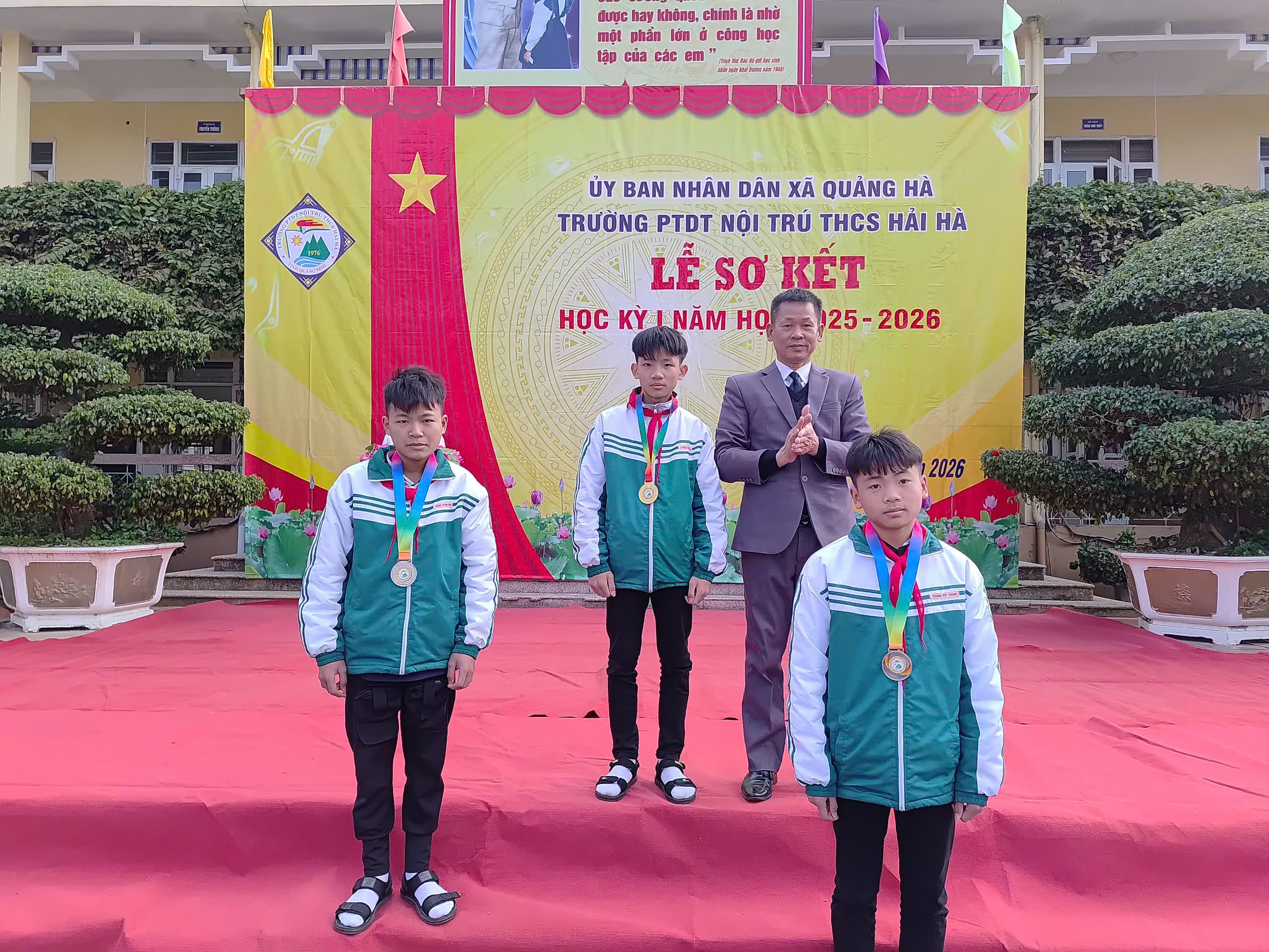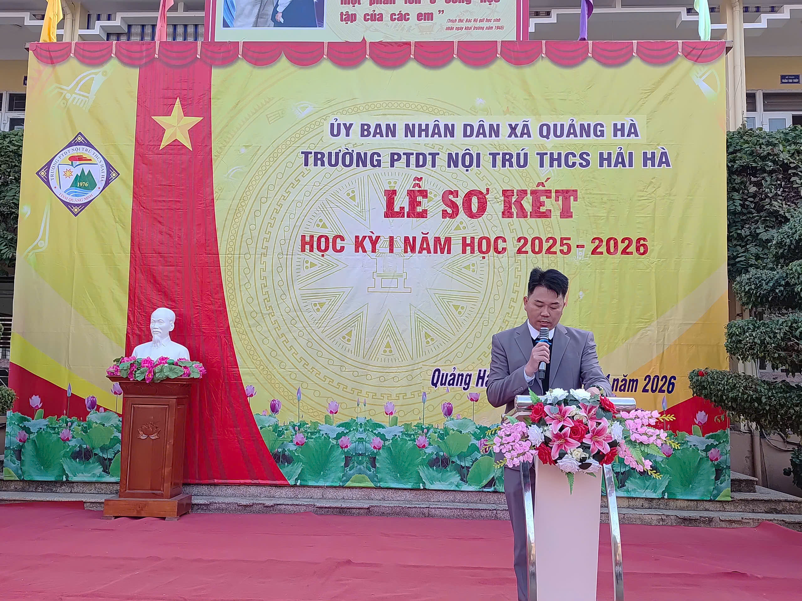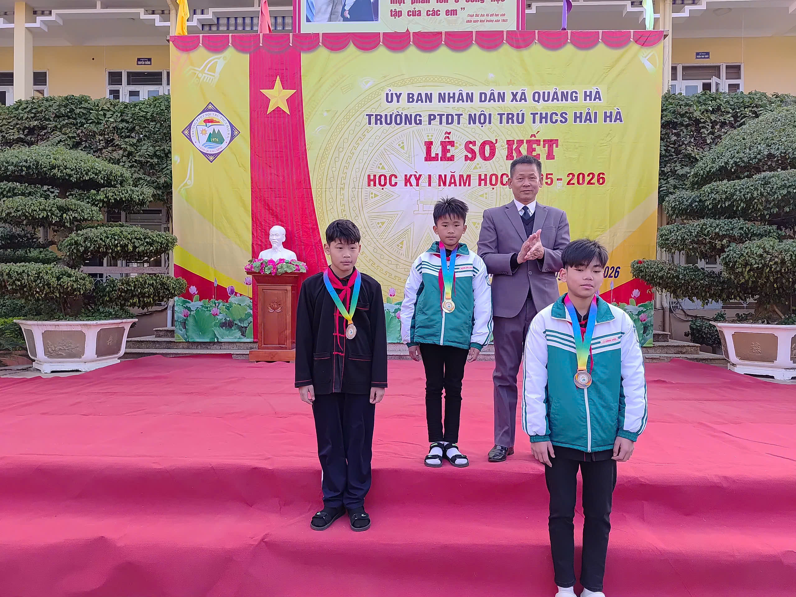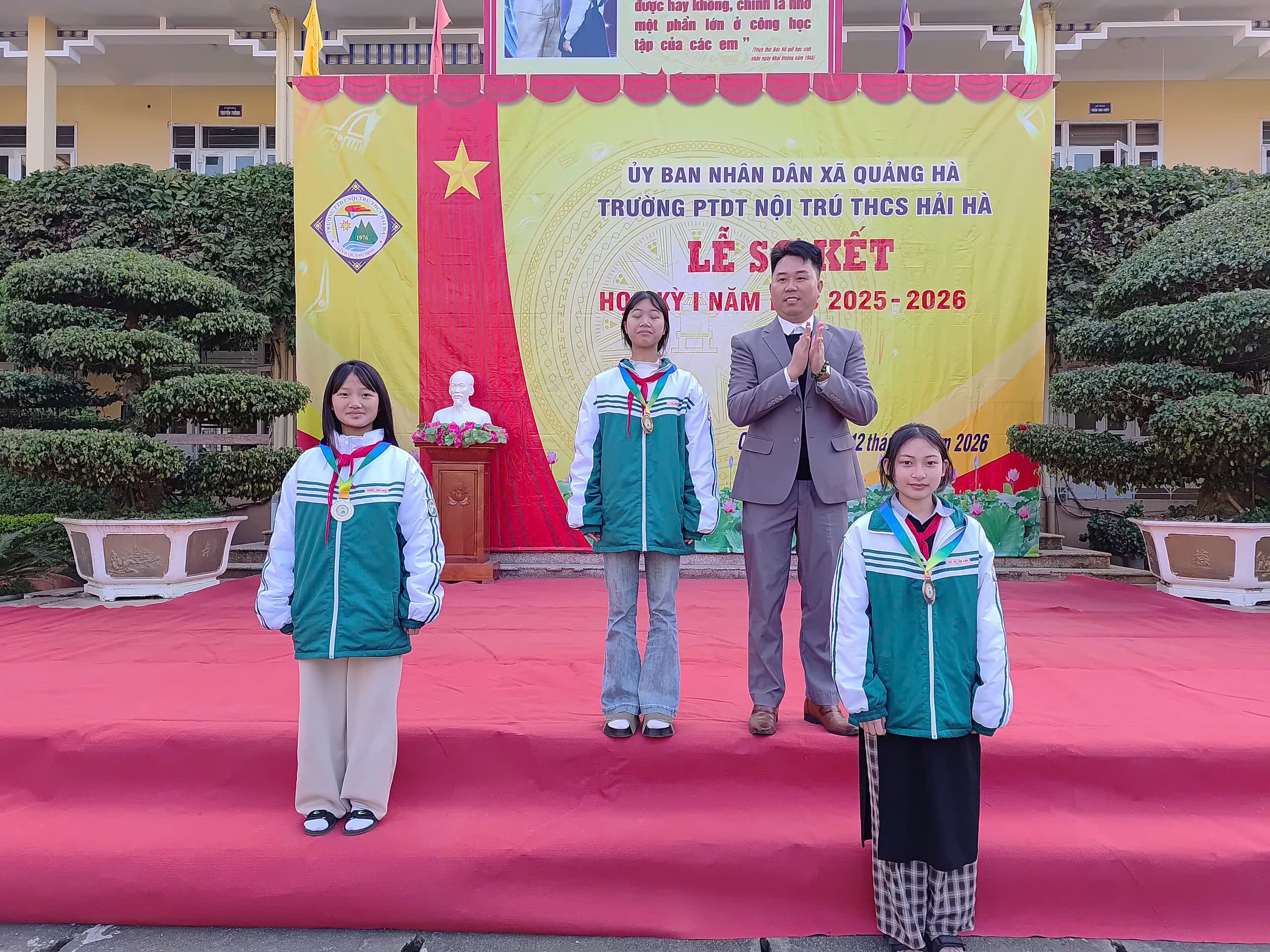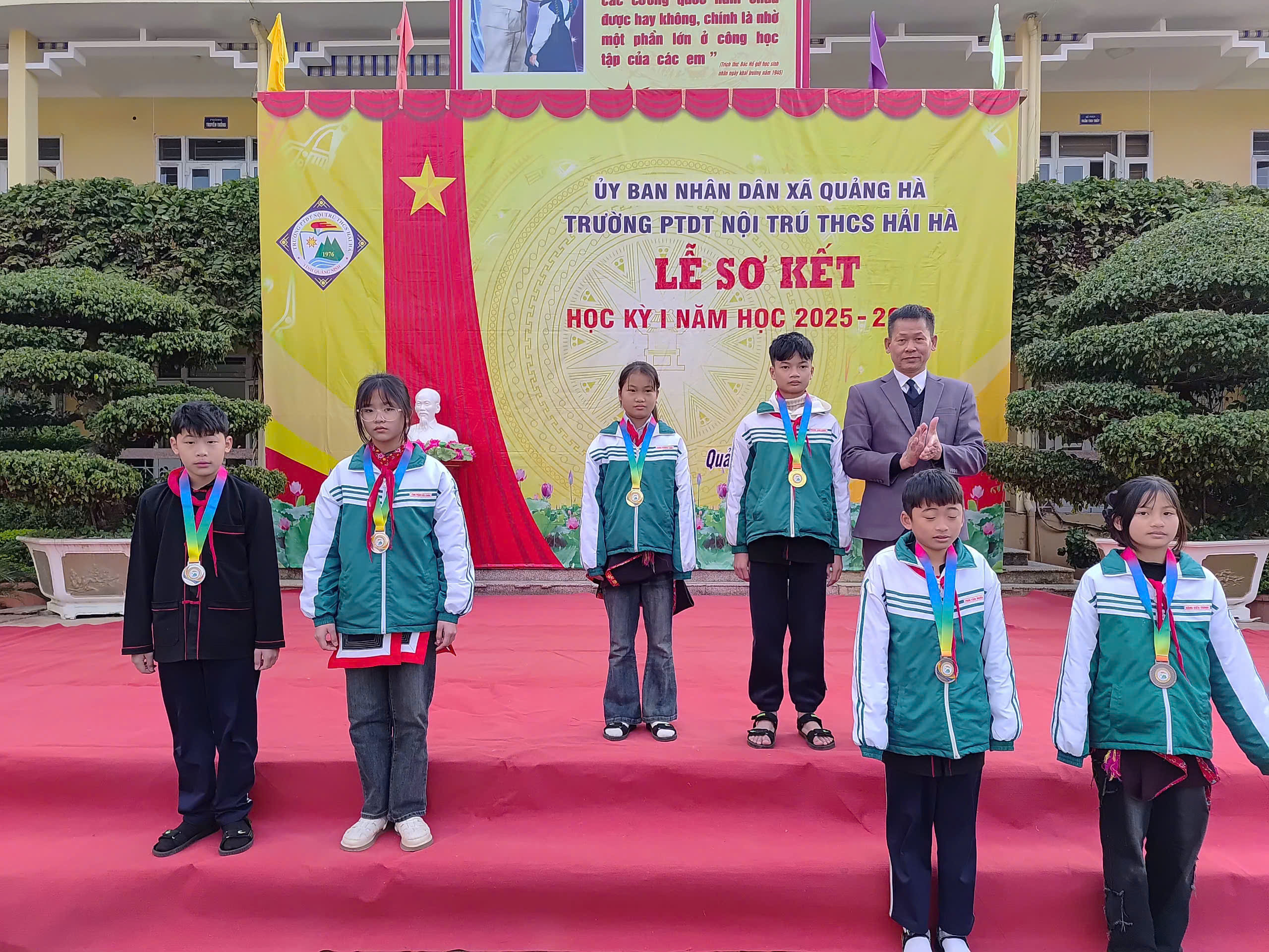 Sáng nay, ngày 12/01/2026, trong không khí se lạnh nhưng đầy nhiệt huyết của những ngày đầu năm mới, Trường PTDT Nội trú THCS Hải Hà đã long trọng tổ chức Lễ Sơ kết học kỳ I năm học 2025 – 2026.