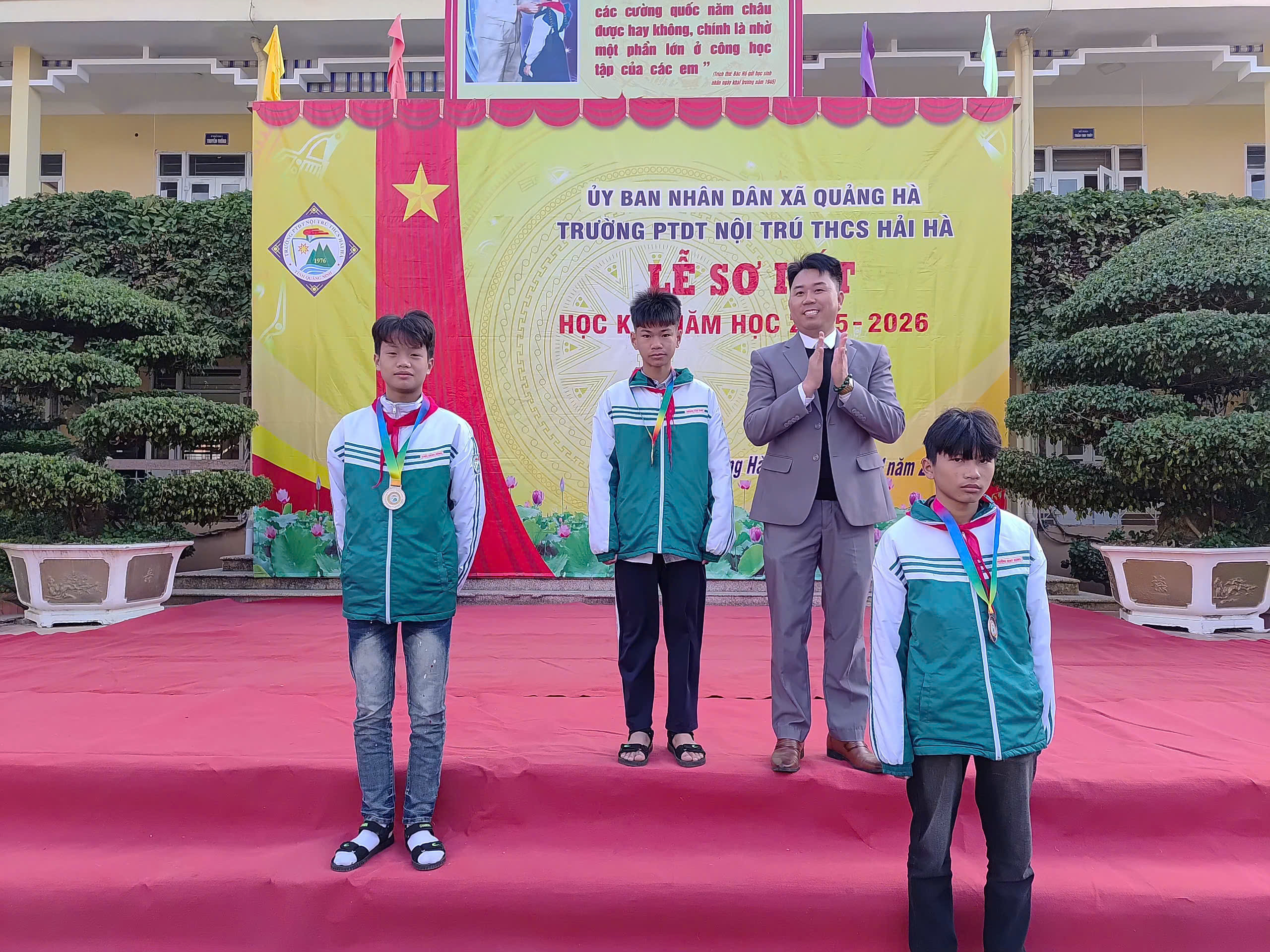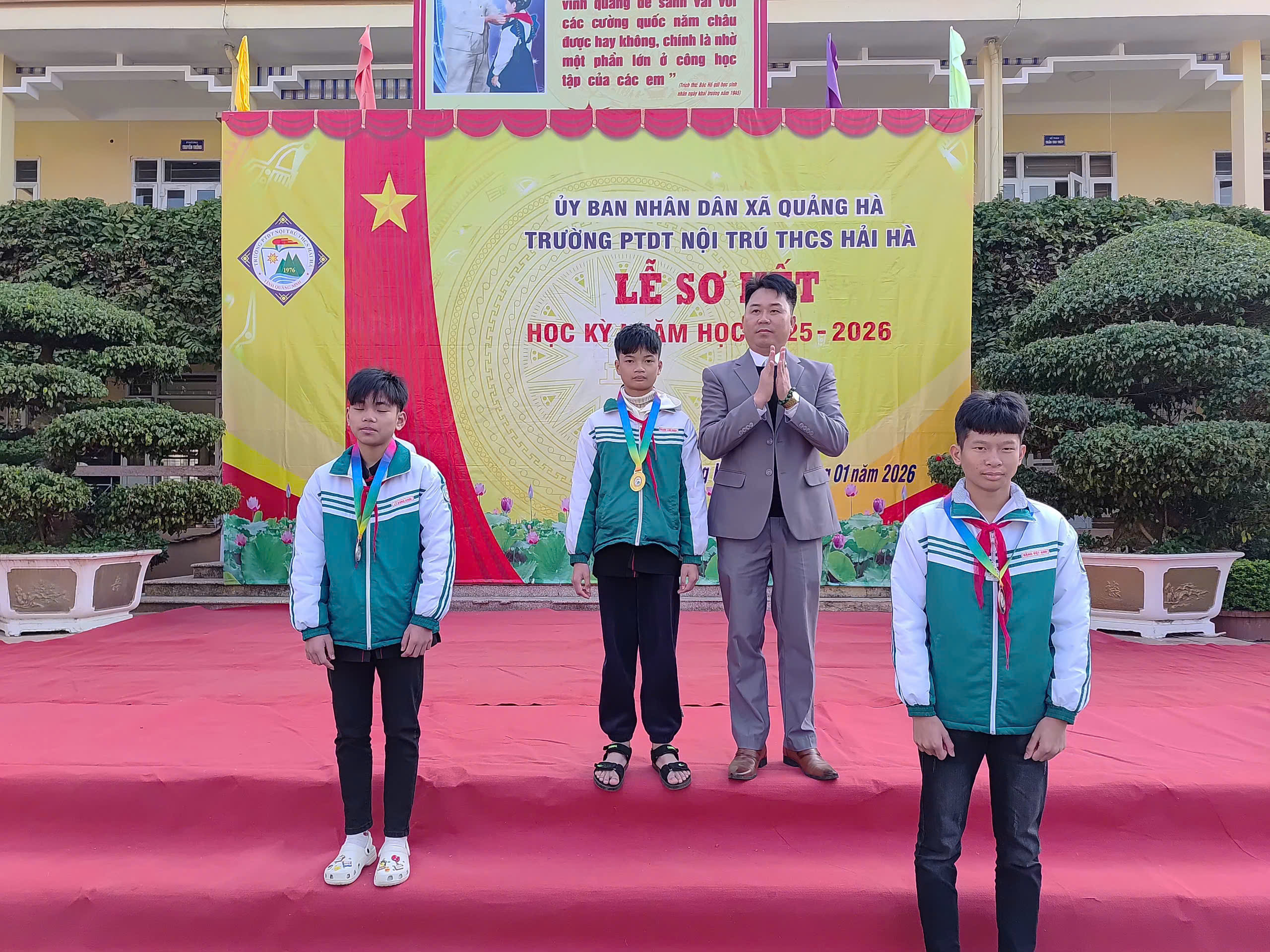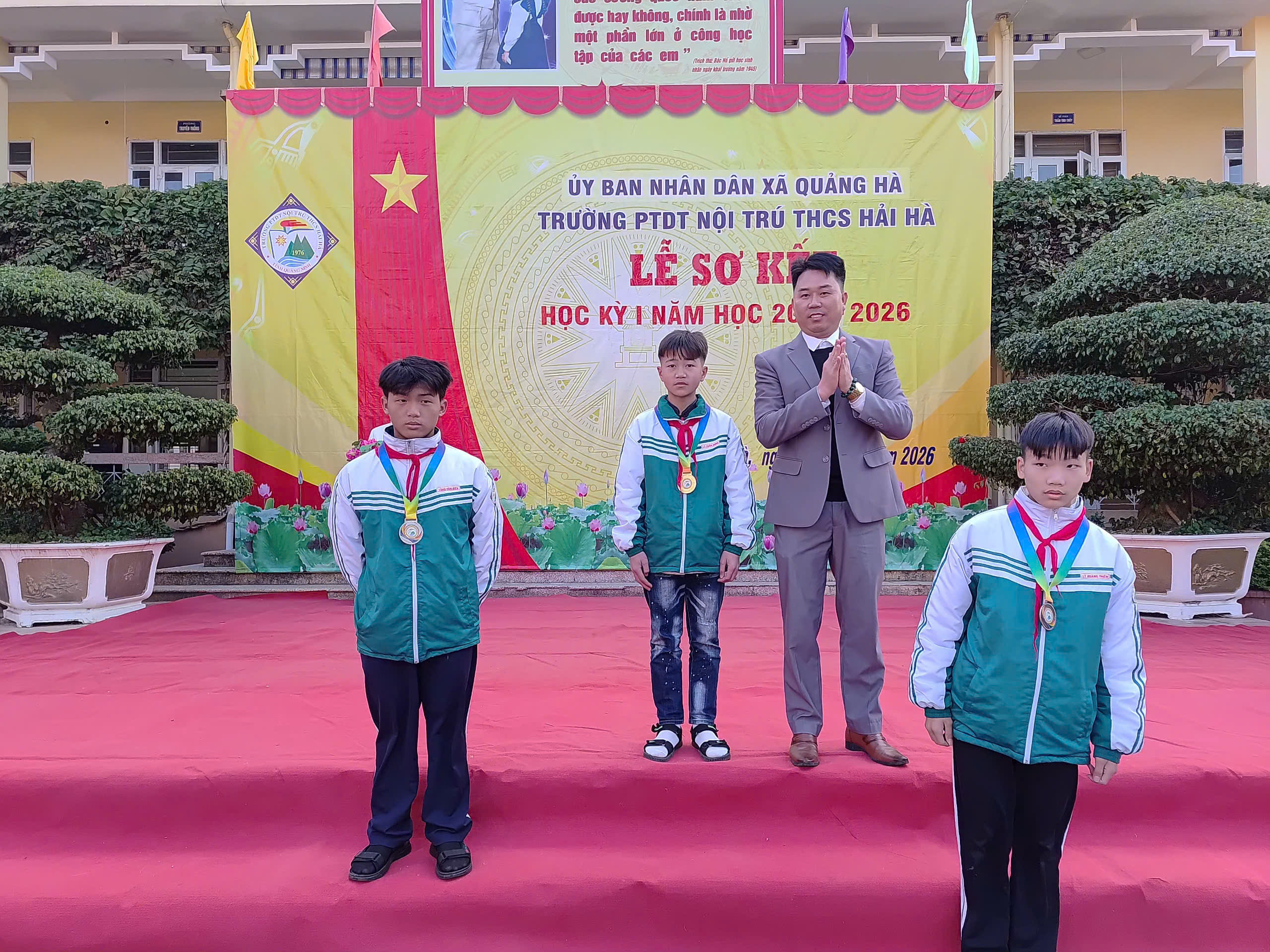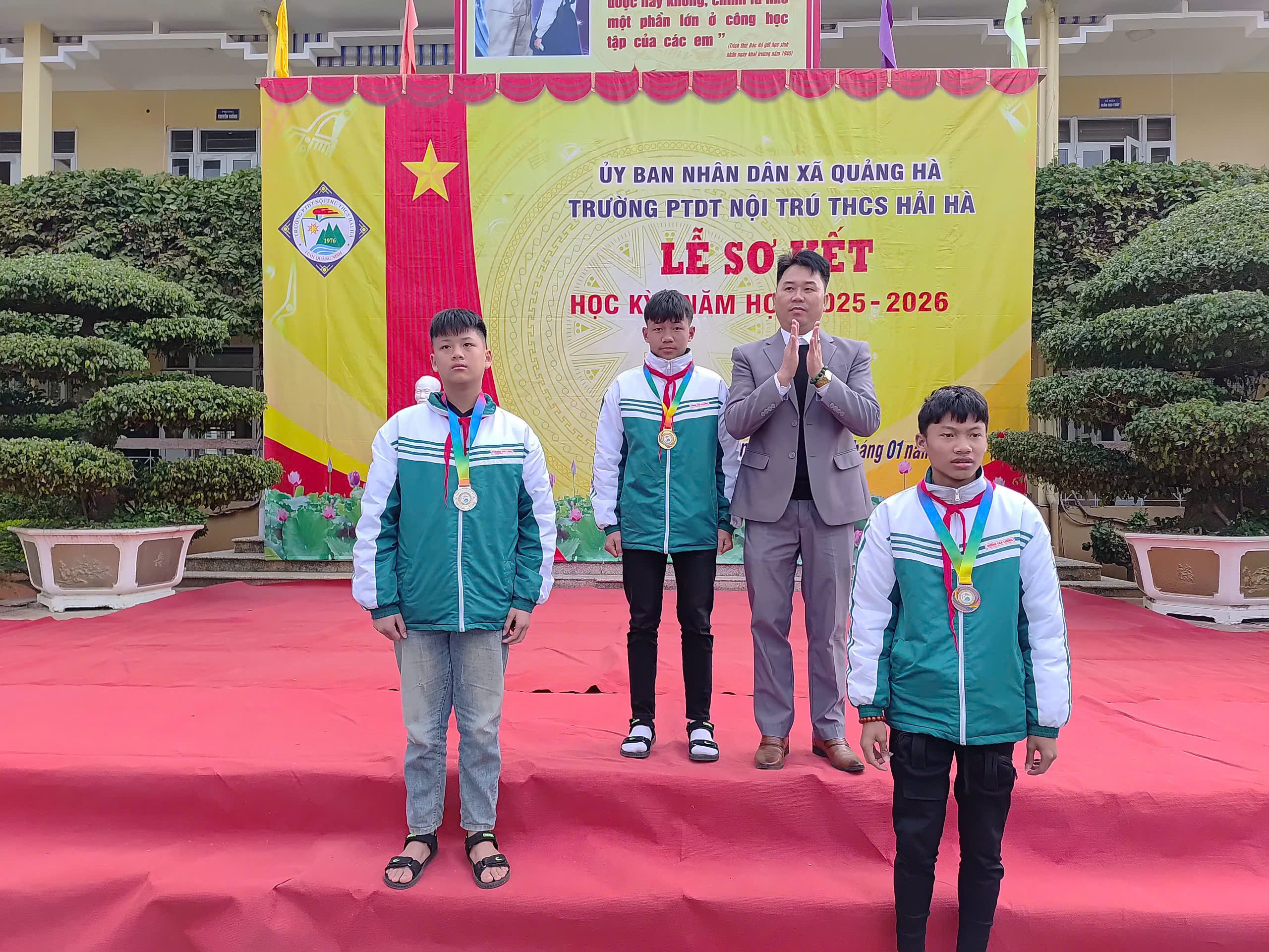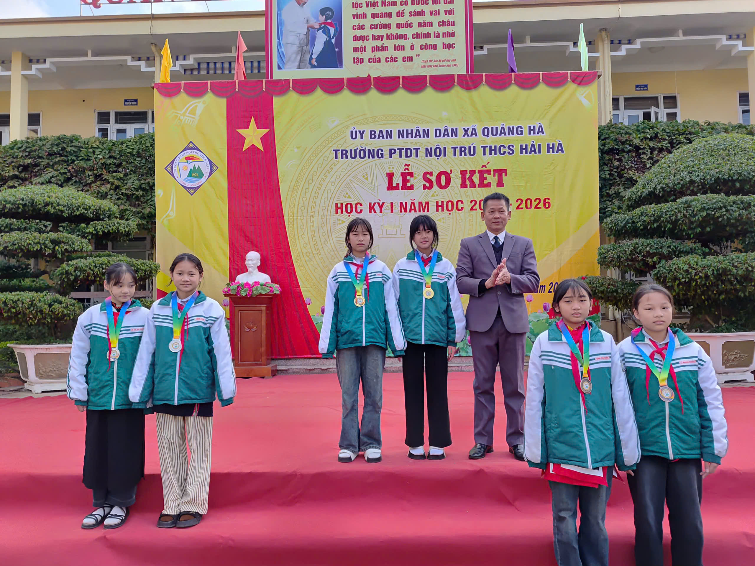 Sáng nay, ngày 12/01/2026, trong không khí se lạnh nhưng đầy nhiệt huyết của những ngày đầu năm mới, Trường PTDT Nội trú THCS Hải Hà đã long trọng tổ chức Lễ Sơ kết học kỳ I năm học 2025 – 2026.