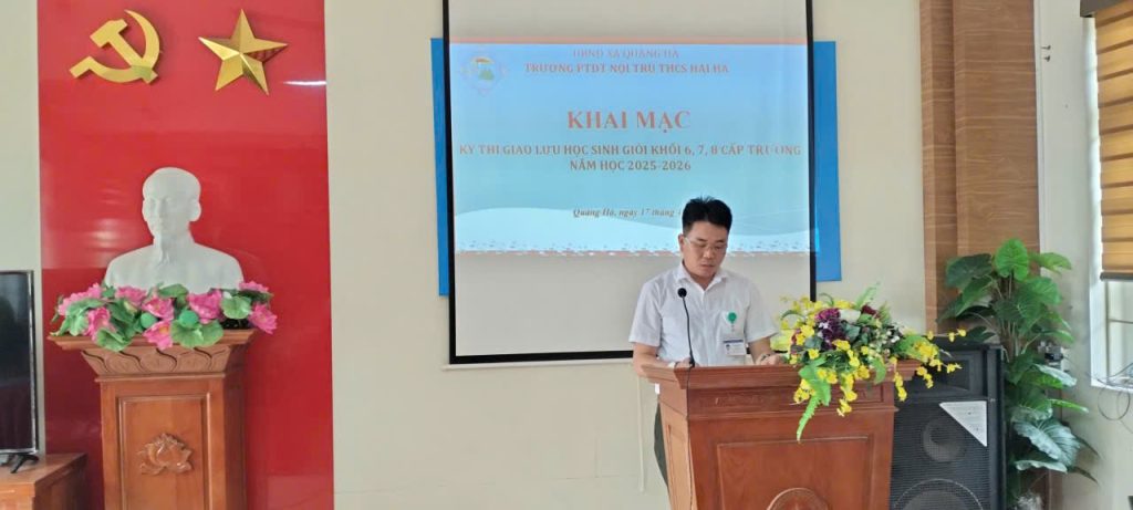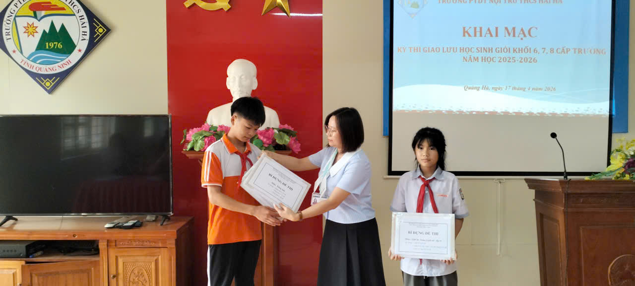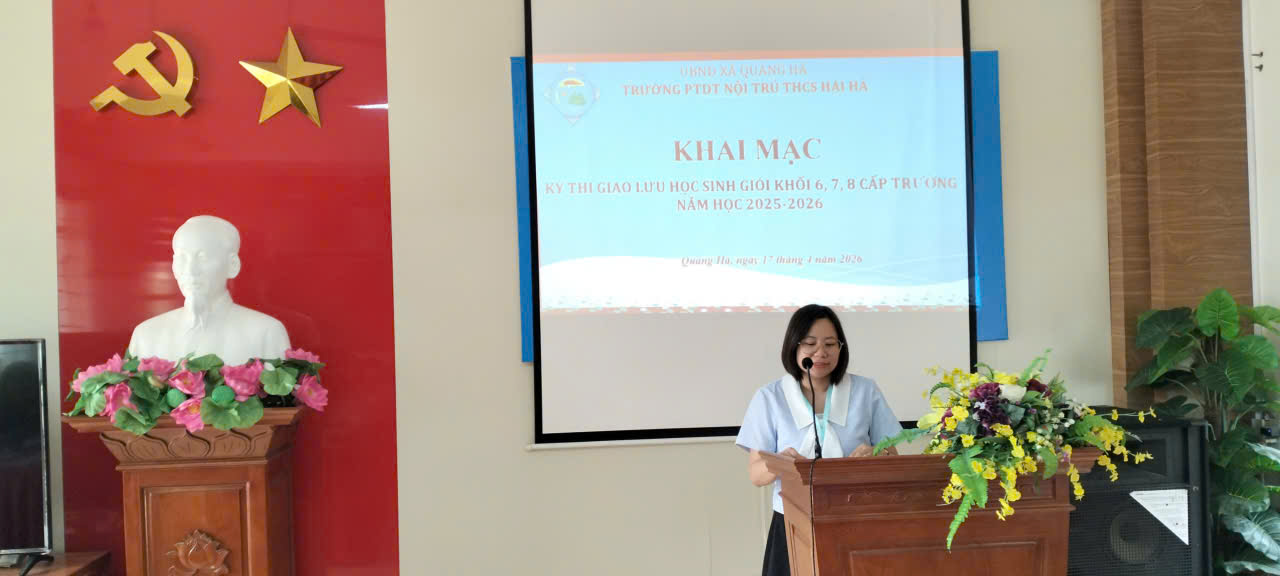 Chiều ngày 17/4/2026, tại Hội trường Trường PTDT Nội trú THCS Hải Hà, nhà trường đã tổ chức Khai mạc Kỳ thi giao lưu học sinh giỏi khối 6, 7, 8 cấp trường năm học 2025–2026 trong không khí nghiêm túc, trang trọng và đầy hứng khởi.