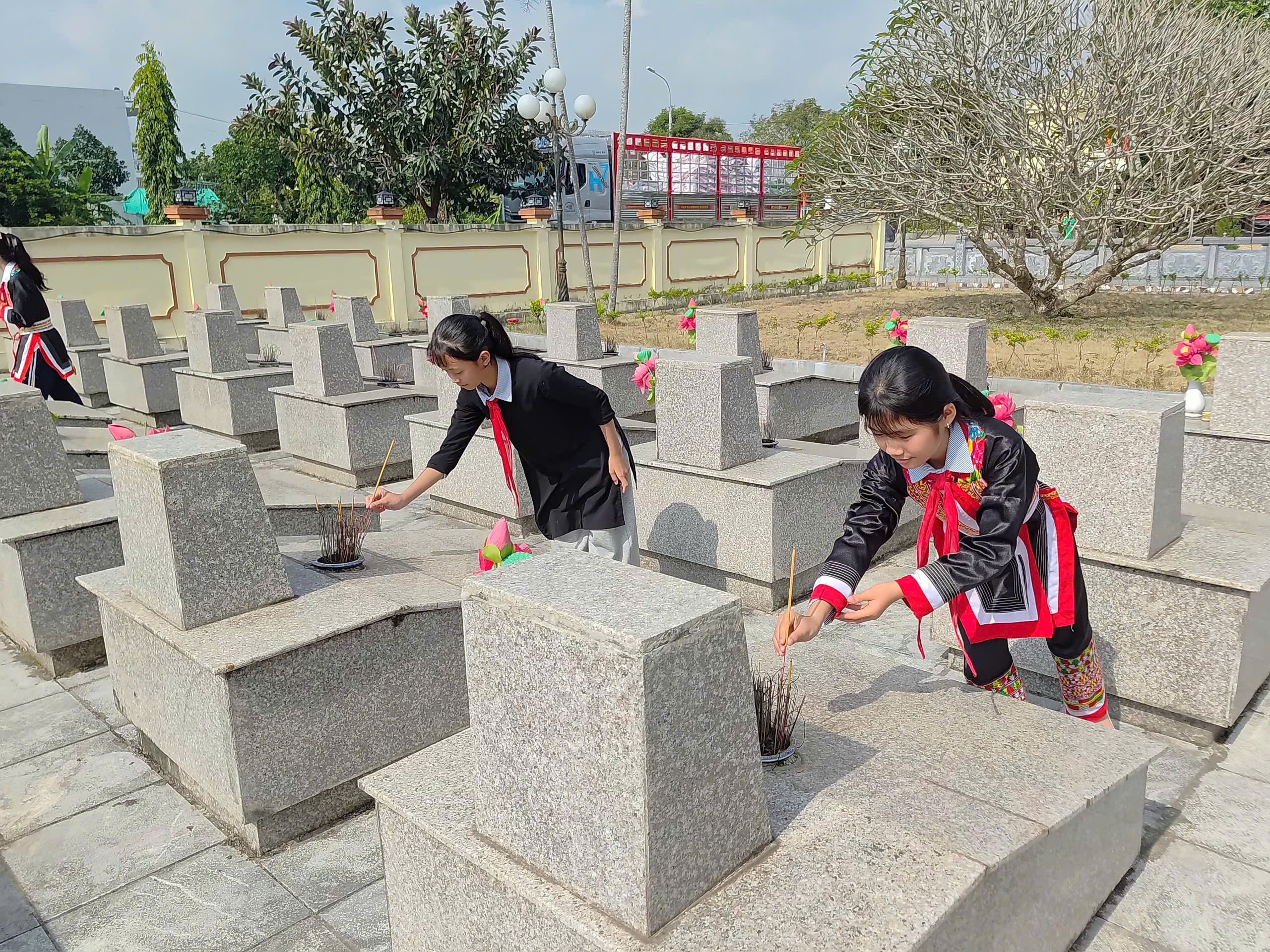 – Hoạt động cộng đồng: Các em học sinh đã cùng nhau quét dọn, vệ sinh khuôn viên nghĩa trang, thể hiện trách nhiệm của thế hệ trẻ với các công trình tri ân tại địa phương.