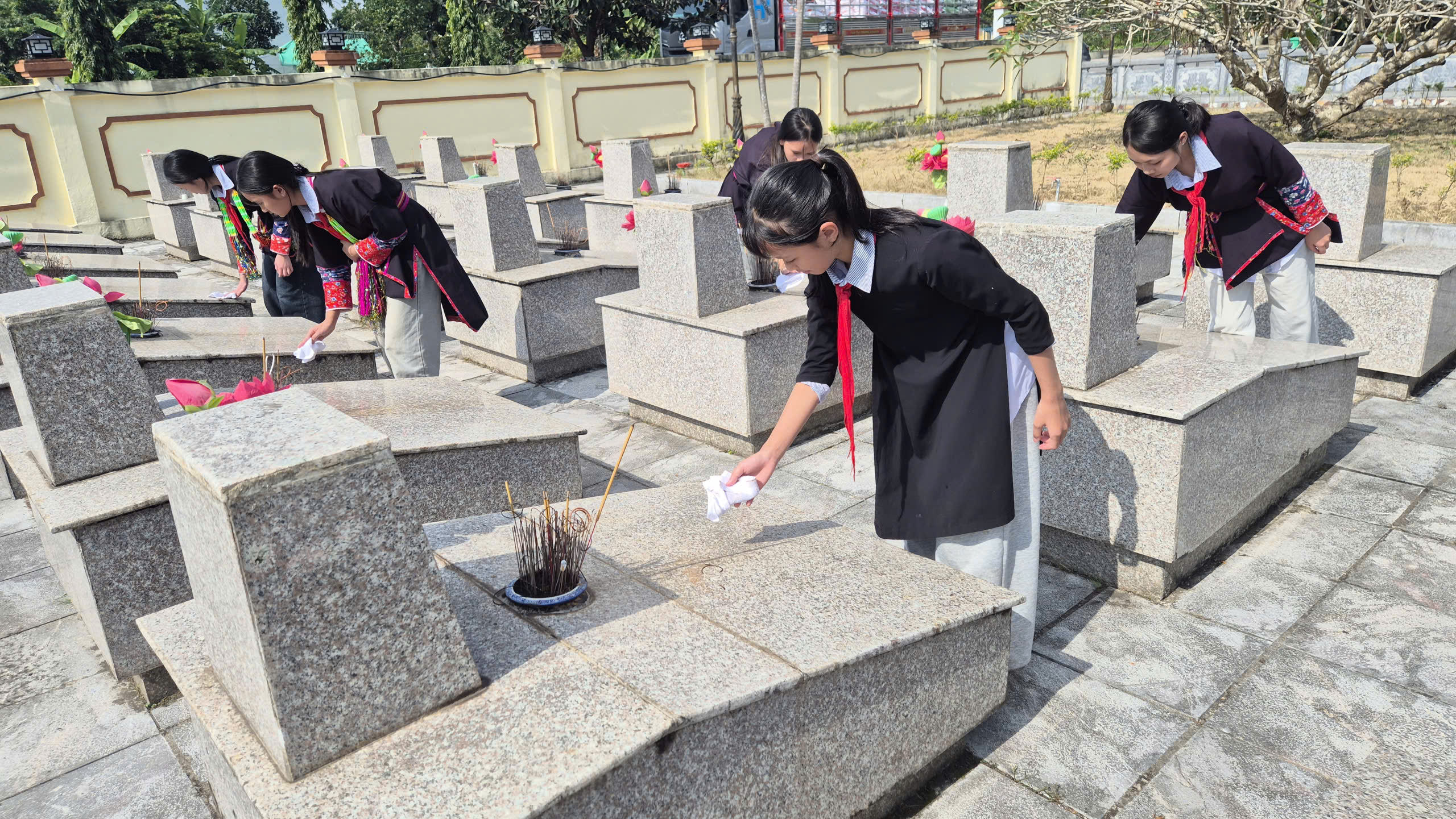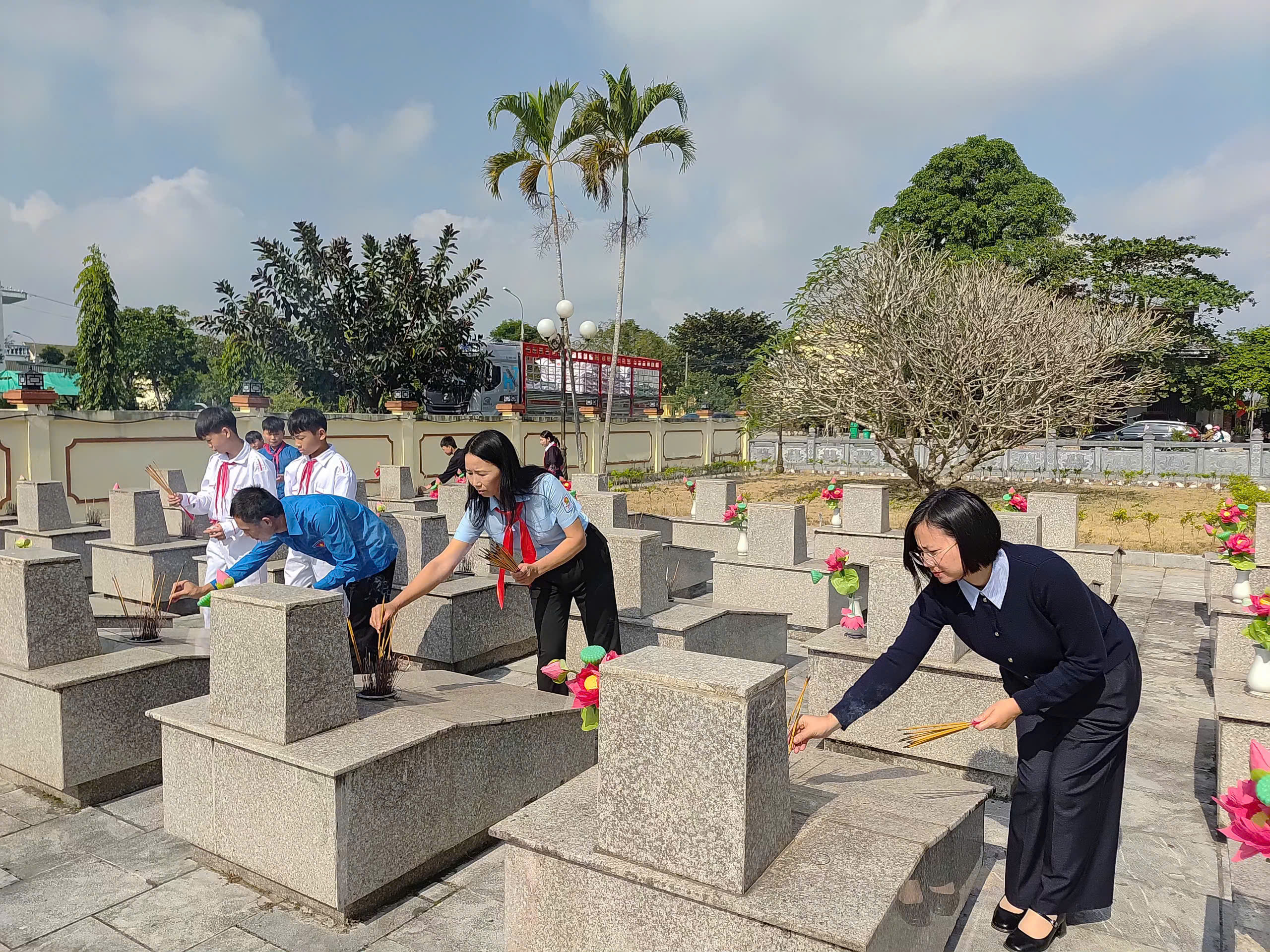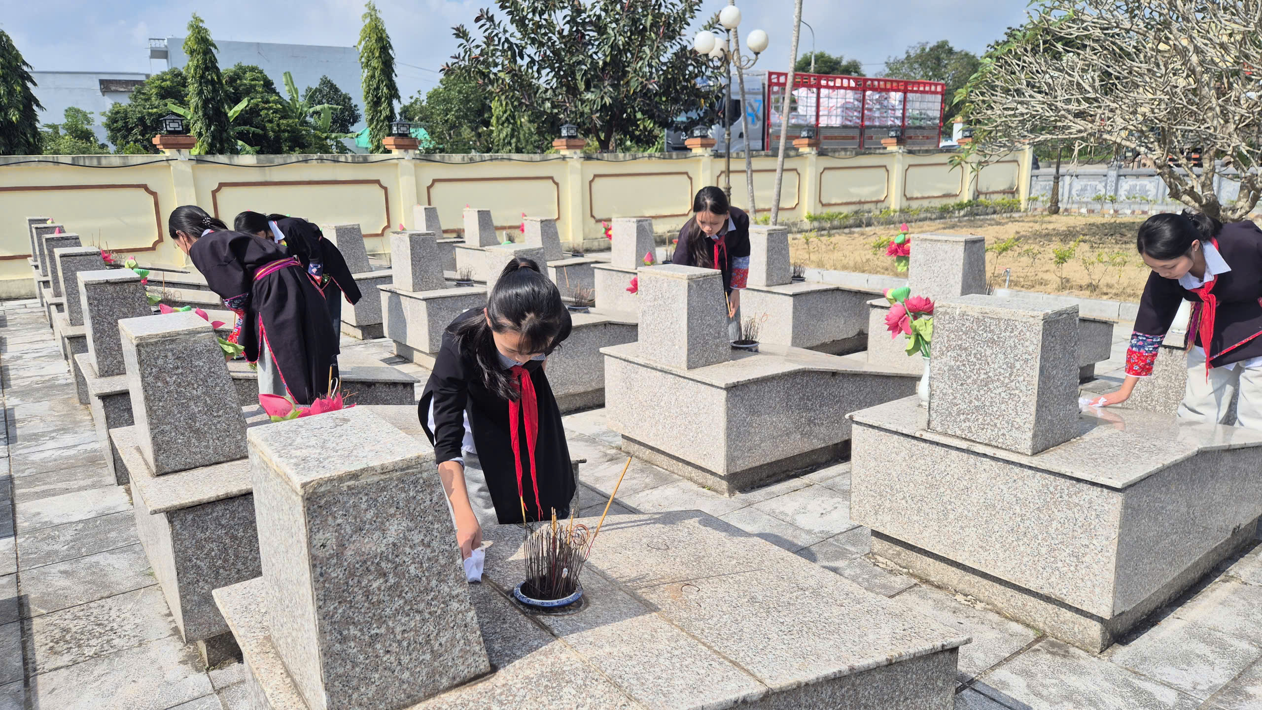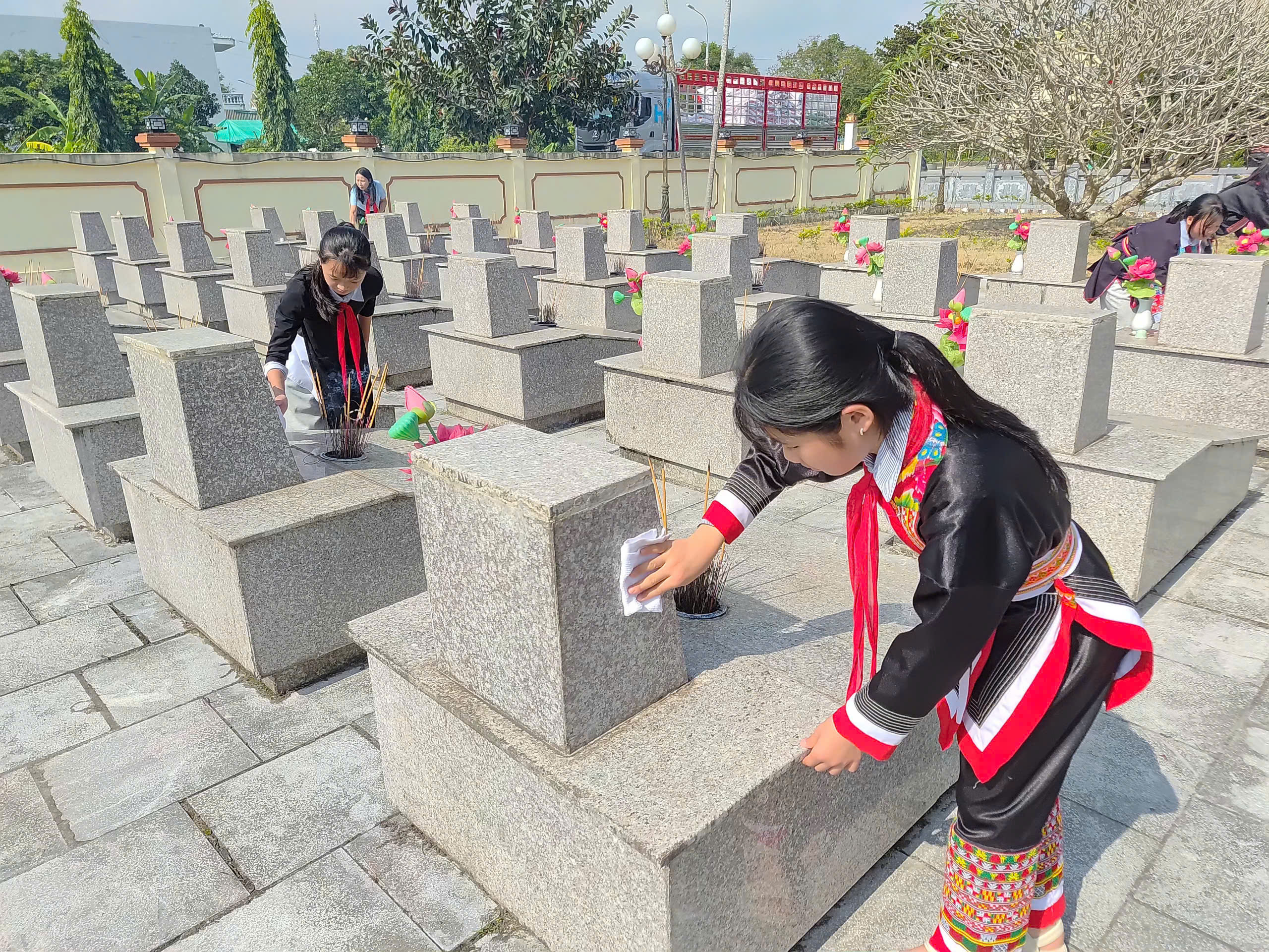 Đây không chỉ là một hoạt động ngoại khóa mà còn là bài học thực tế sâu sắc về lòng yêu nước và tinh thần biết ơn đối với những người con ưu tú đã ngã xuống vì độc lập, tự do của Tổ quốc.