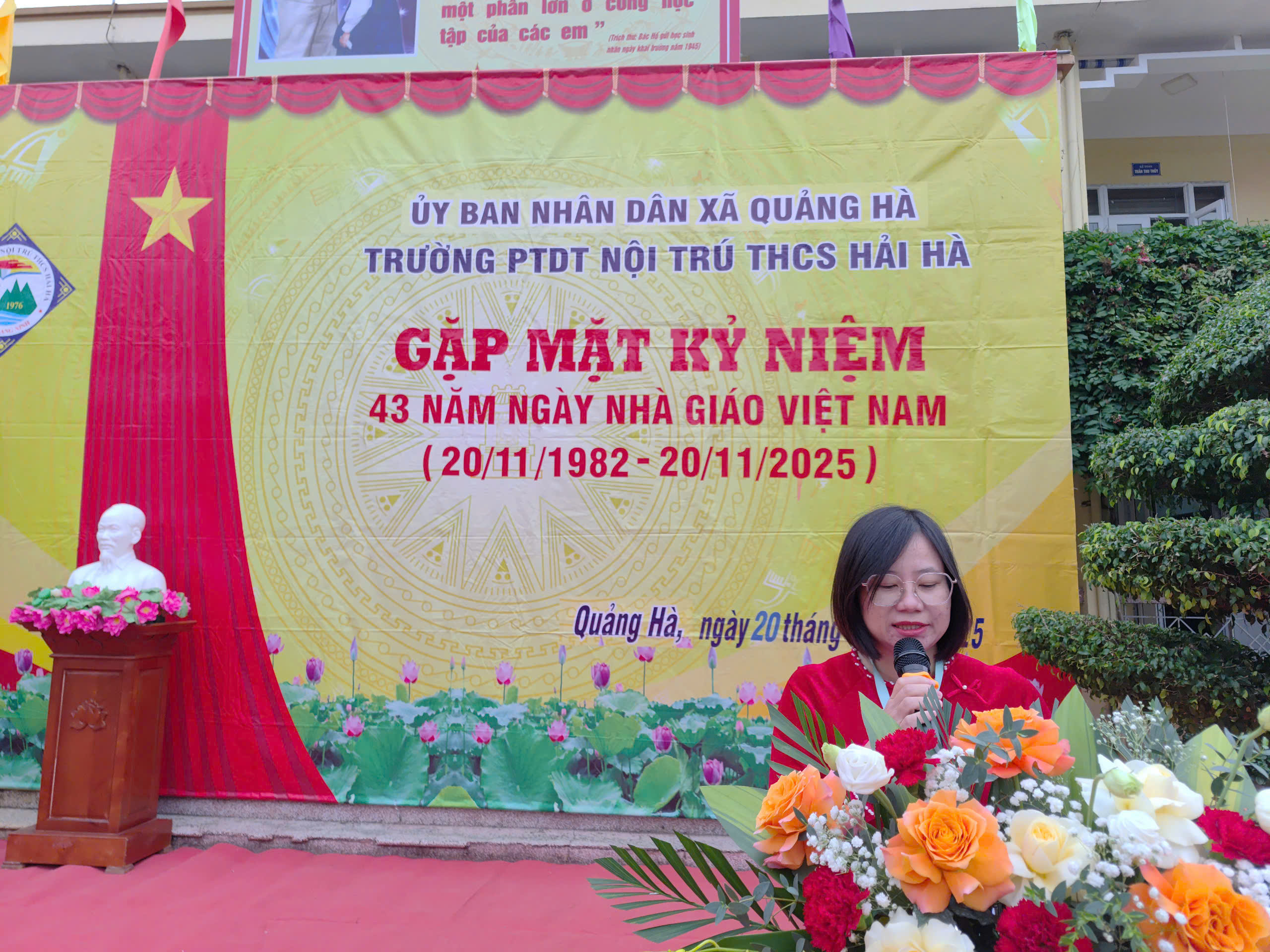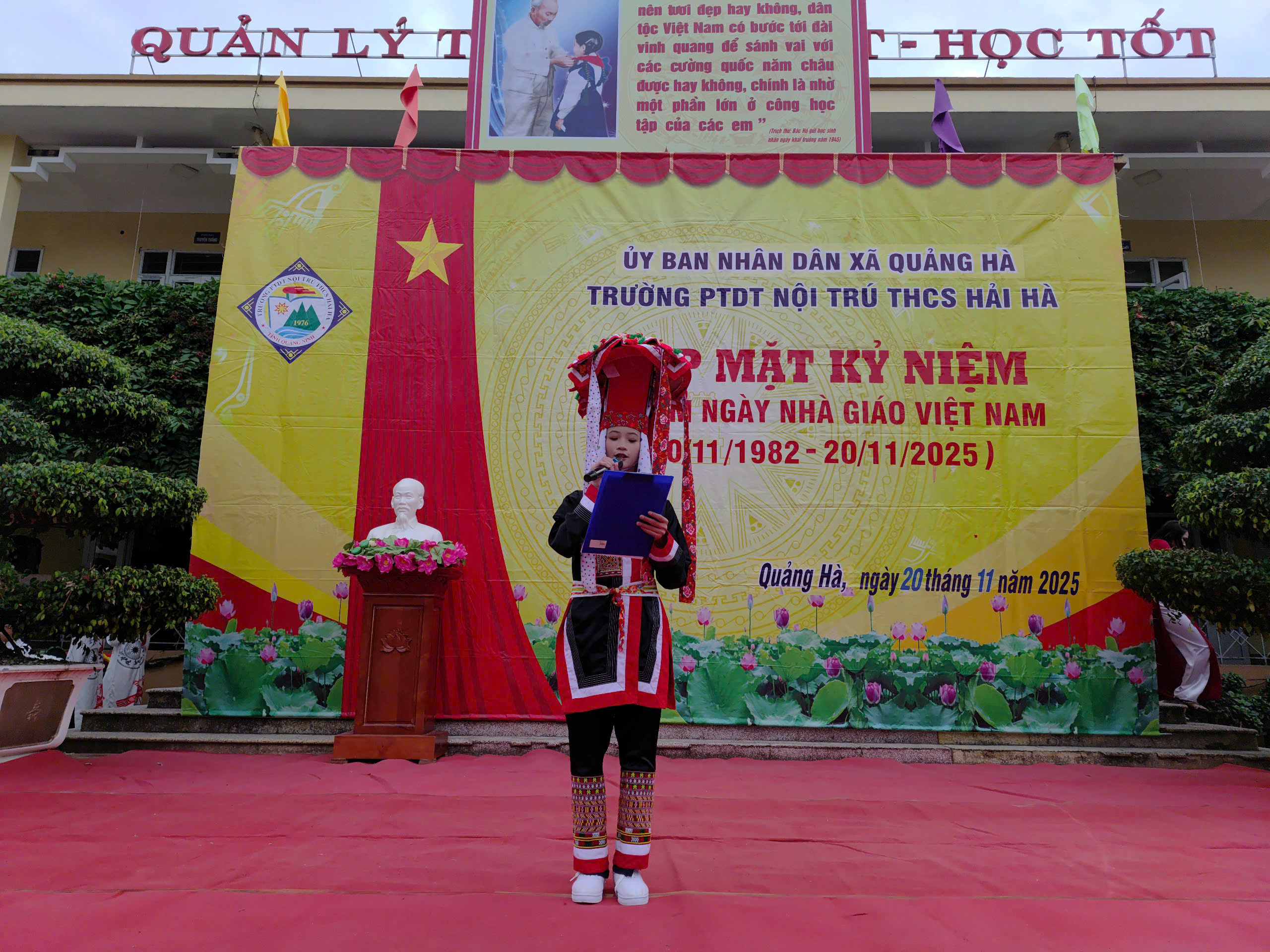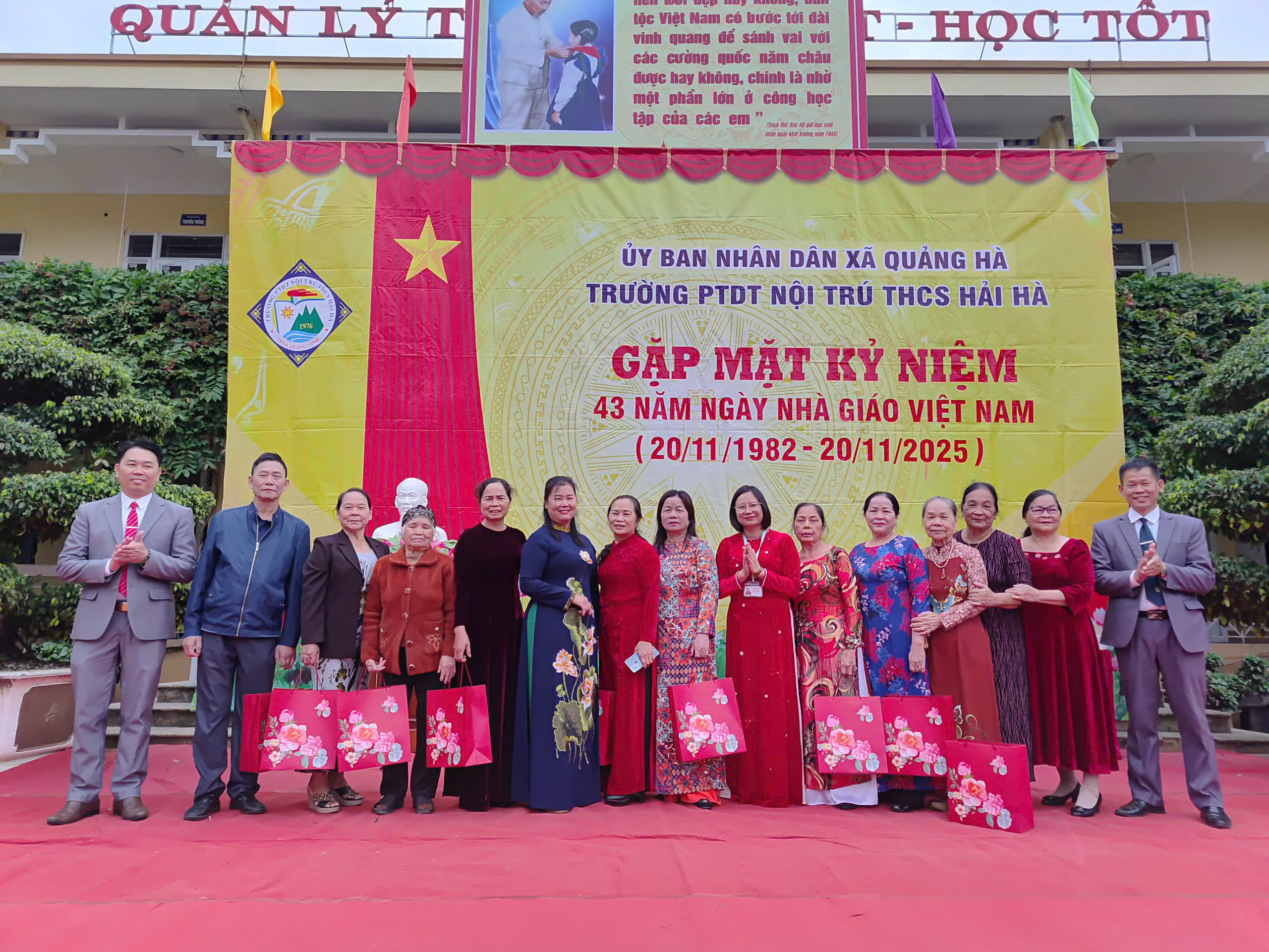 Hòa trong không khí hân hoan của cả nước hướng về Ngày Nhà giáo Việt Nam 20/11, sáng ngày 20/11/2025, tập thể cán bộ, giáo viên, nhân viên và học sinh Trường PTDTNT THCS Hải Hà long trọng tổ chức buổi gặp mặt kỷ niệm 43 năm Ngày Nhà giáo Việt Nam – ngày hội lớn của những người làm công tác giáo dục và cũng là dịp để tri ân, tôn vinh những người đã và đang cống hiến thầm lặng cho sự nghiệp “trồng người” cao quý.