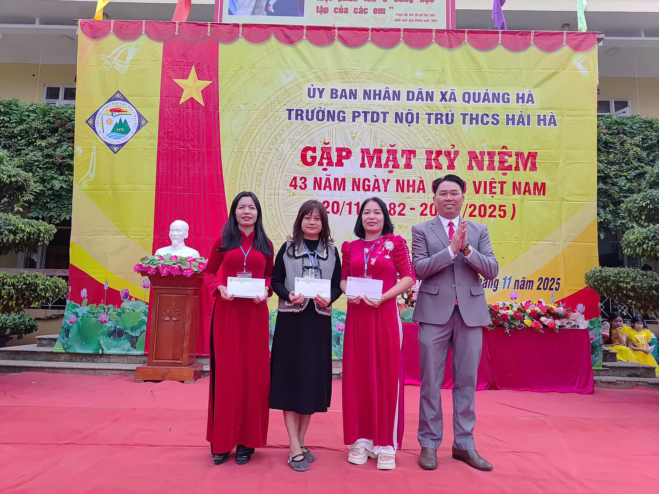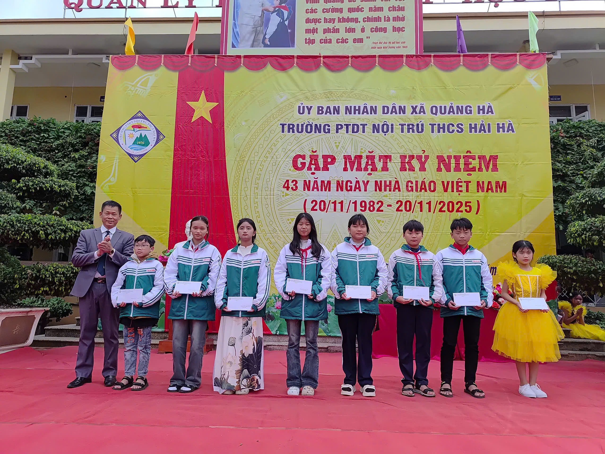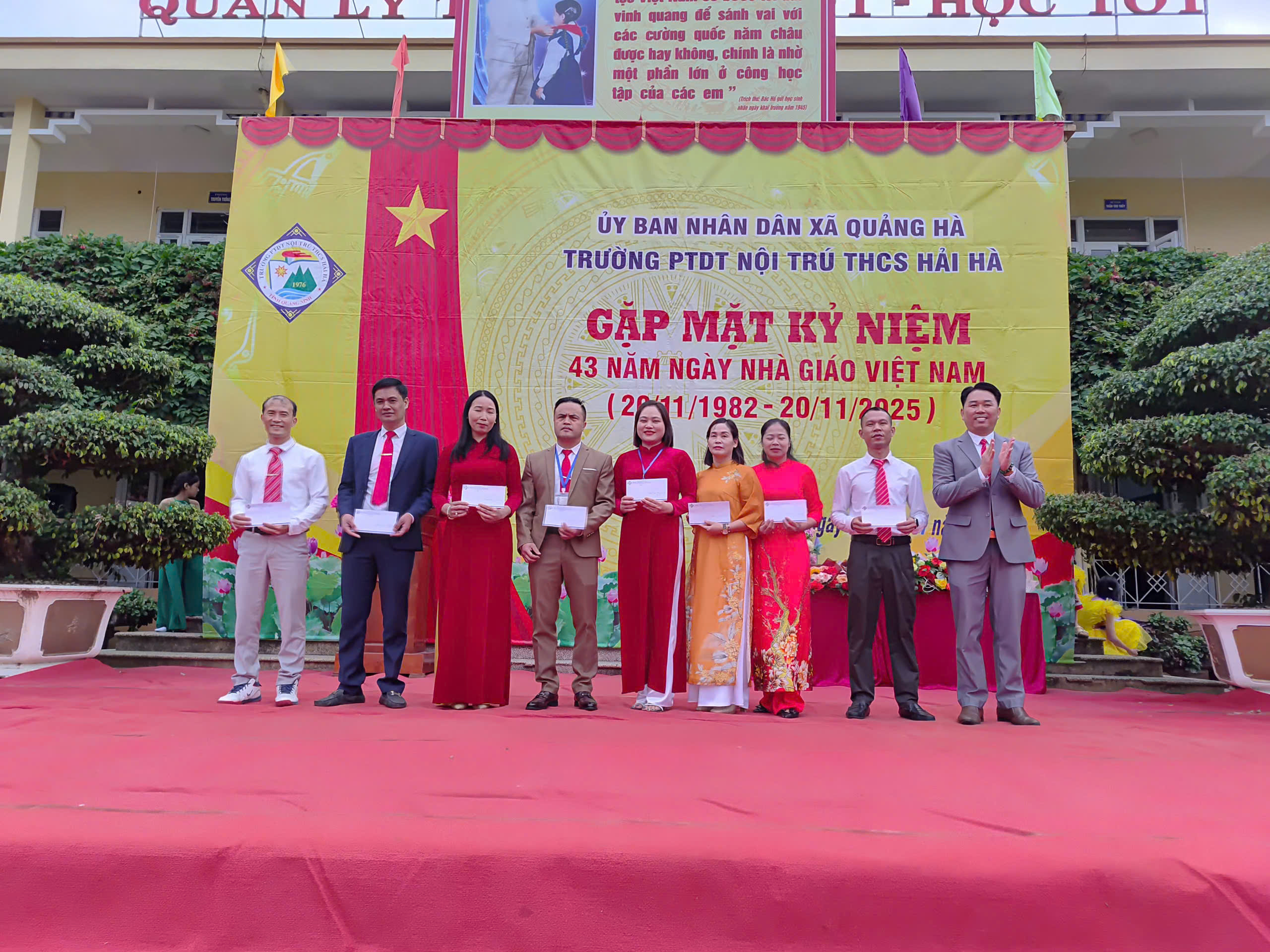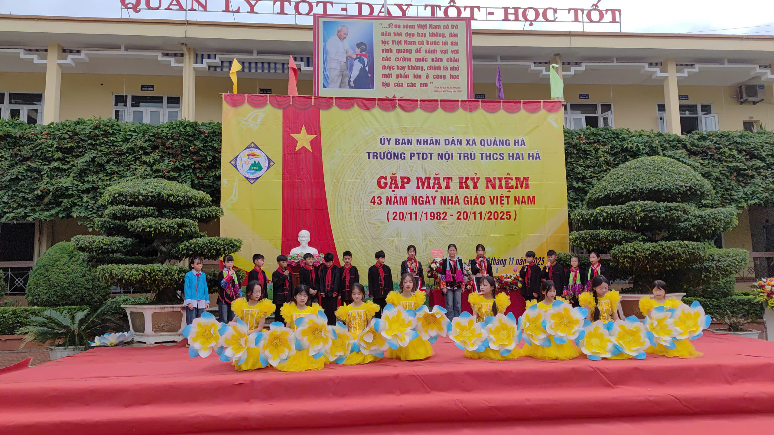 Hòa trong không khí hân hoan của cả nước hướng về Ngày Nhà giáo Việt Nam 20/11, sáng ngày 20/11/2025, tập thể cán bộ, giáo viên, nhân viên và học sinh Trường PTDTNT THCS Hải Hà long trọng tổ chức buổi gặp mặt kỷ niệm 43 năm Ngày Nhà giáo Việt Nam – ngày hội lớn của những người làm công tác giáo dục và cũng là dịp để tri ân, tôn vinh những người đã và đang cống hiến thầm lặng cho sự nghiệp “trồng người” cao quý.