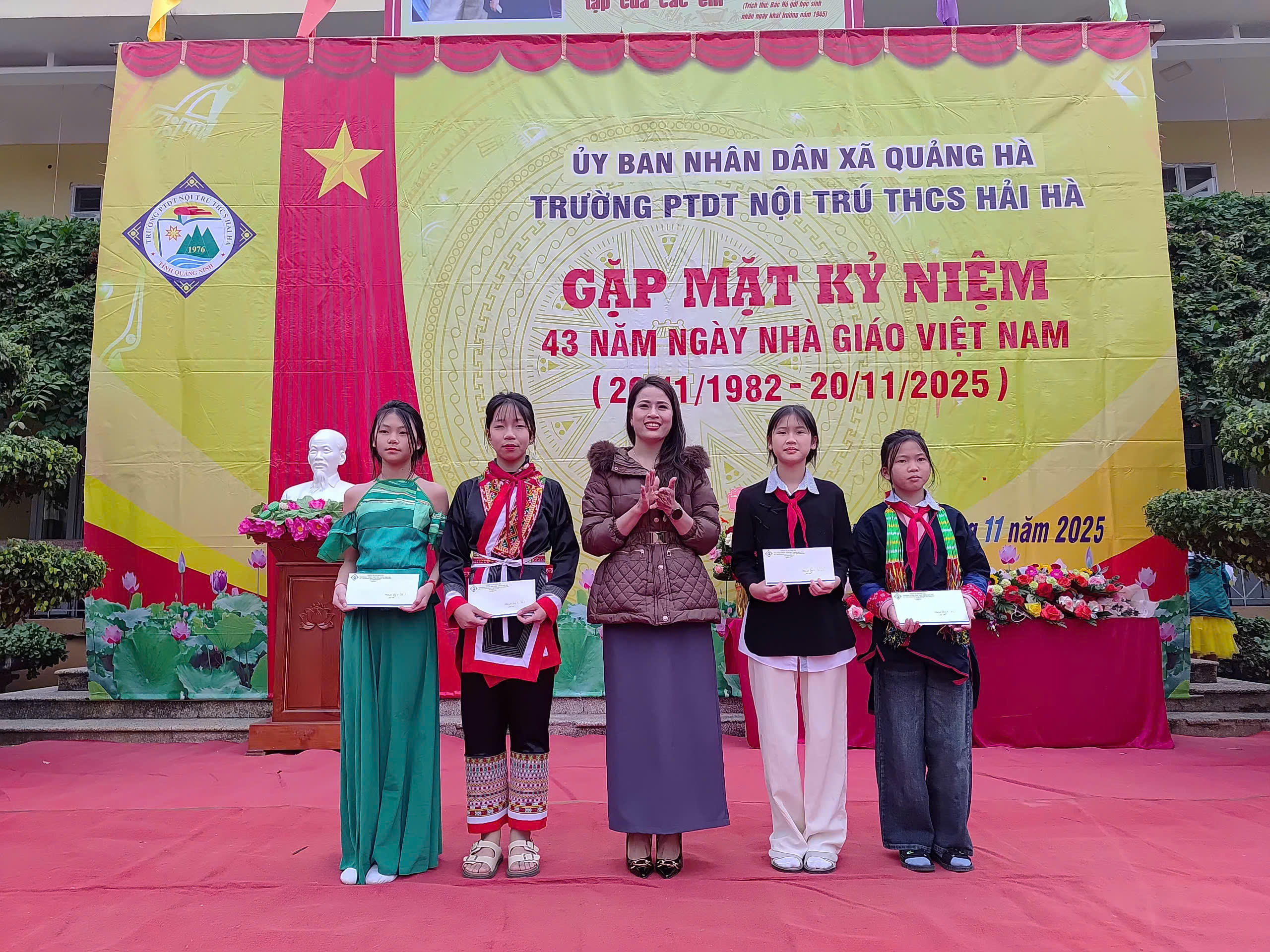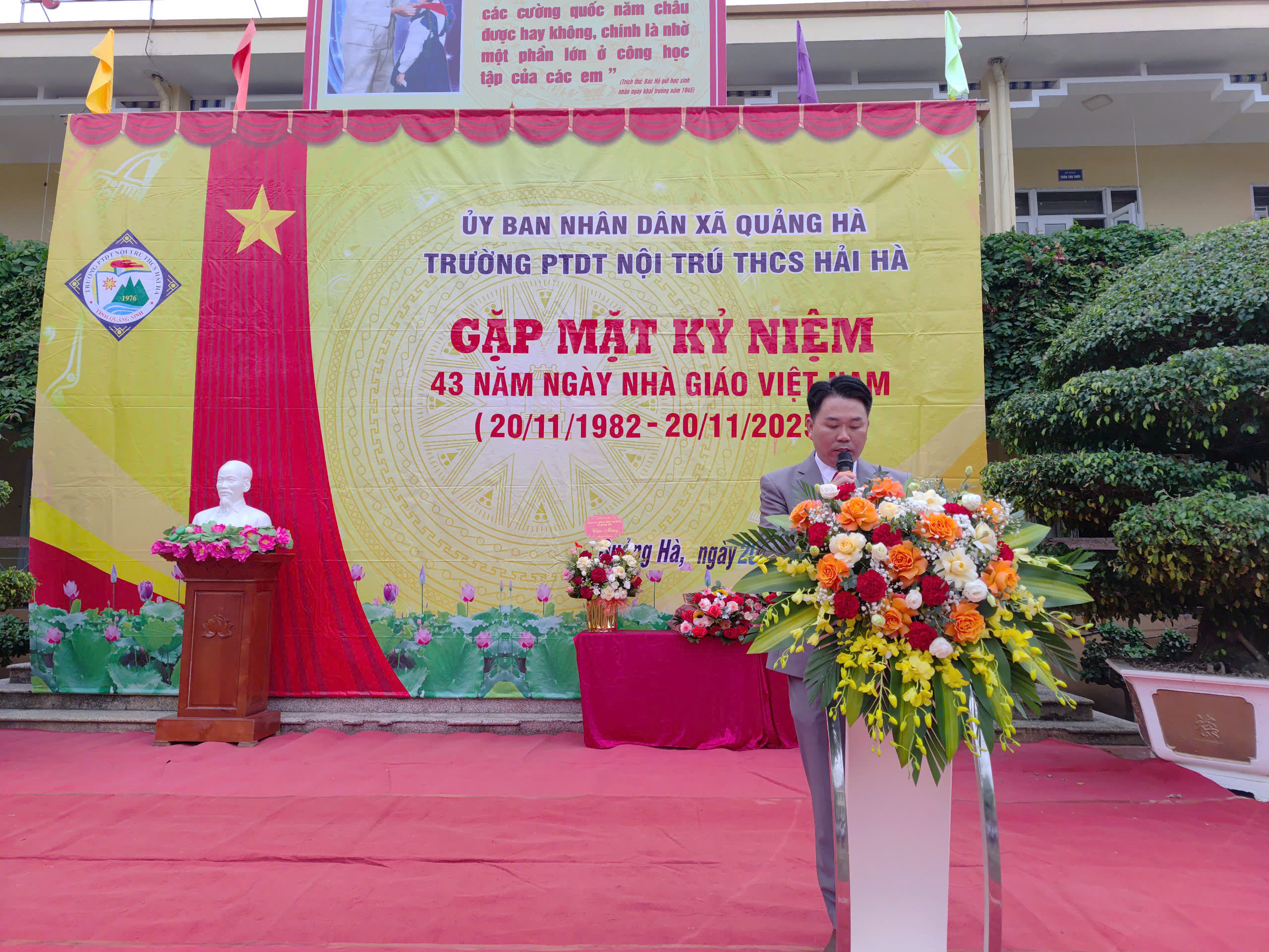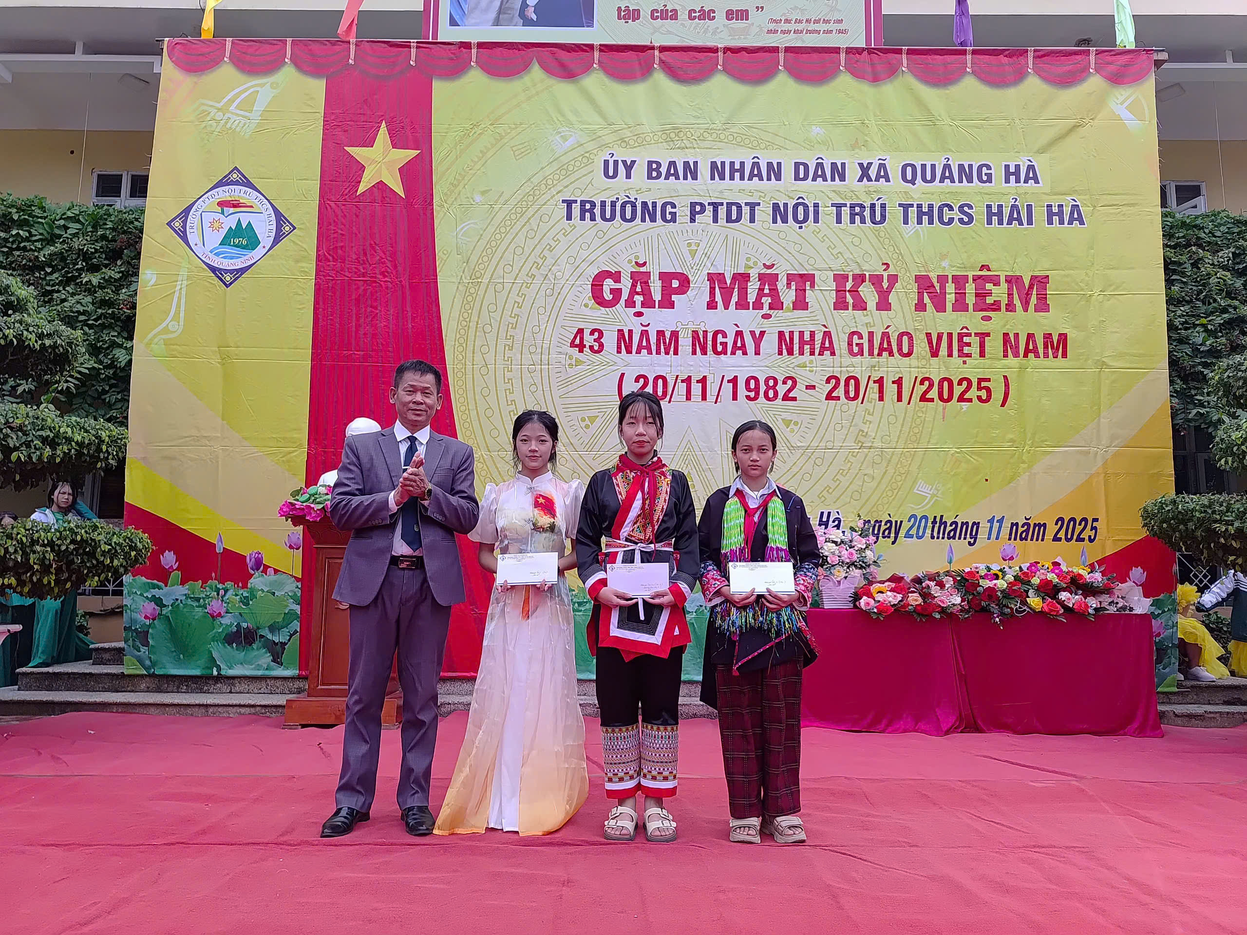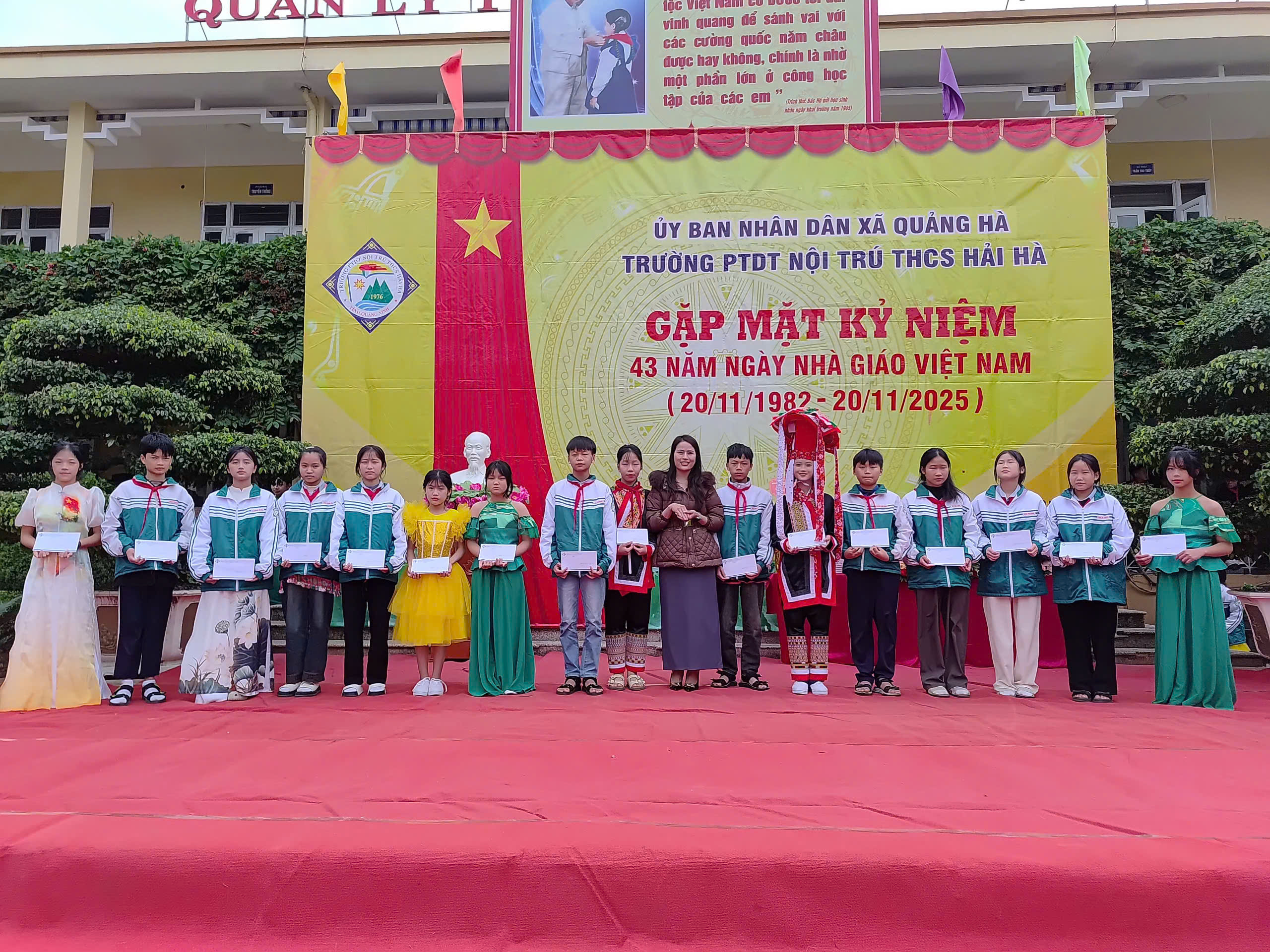 Hòa trong không khí hân hoan của cả nước hướng về Ngày Nhà giáo Việt Nam 20/11, sáng ngày 20/11/2025, tập thể cán bộ, giáo viên, nhân viên và học sinh Trường PTDTNT THCS Hải Hà long trọng tổ chức buổi gặp mặt kỷ niệm 43 năm Ngày Nhà giáo Việt Nam – ngày hội lớn của những người làm công tác giáo dục và cũng là dịp để tri ân, tôn vinh những người đã và đang cống hiến thầm lặng cho sự nghiệp “trồng người” cao quý.