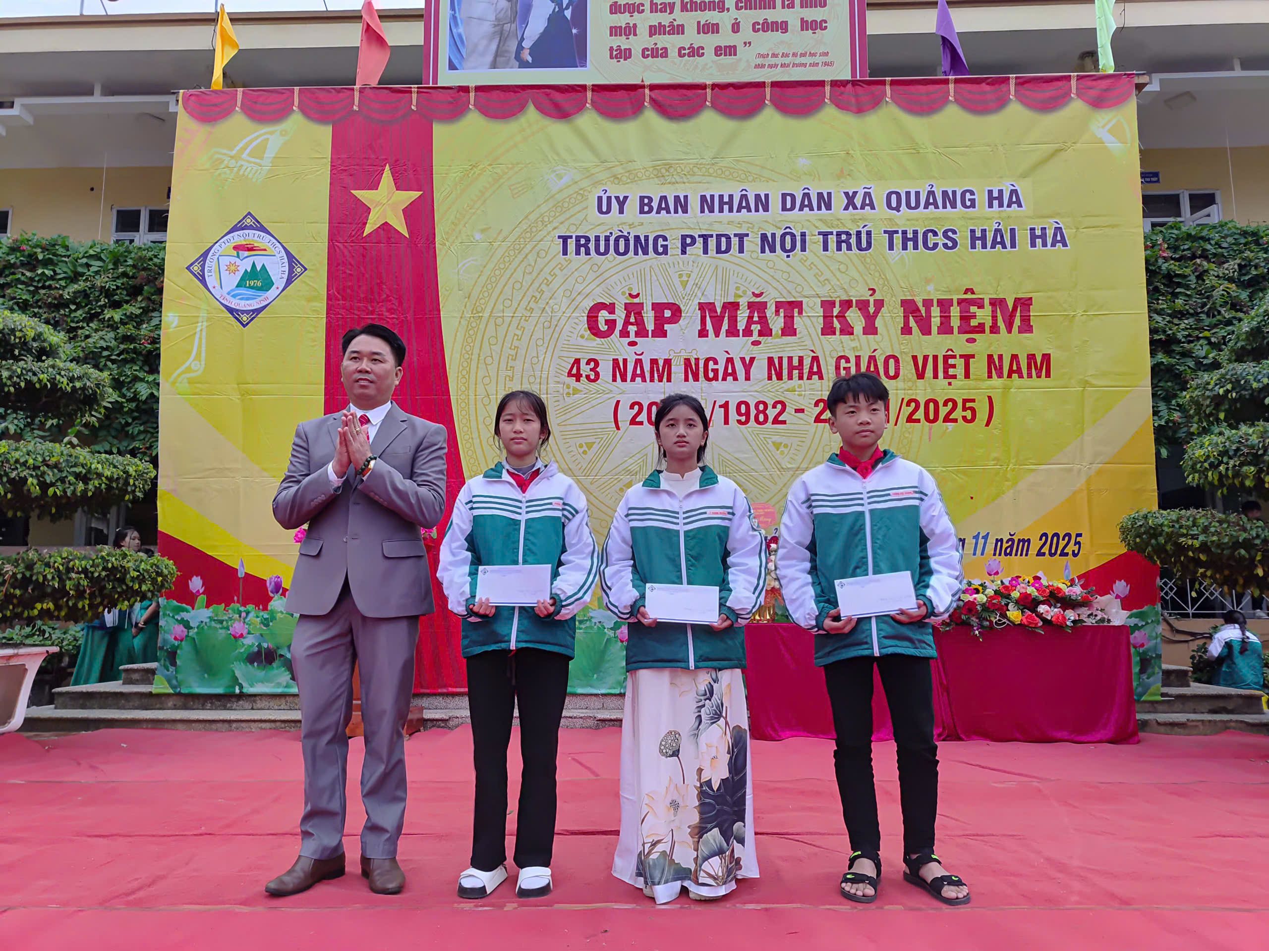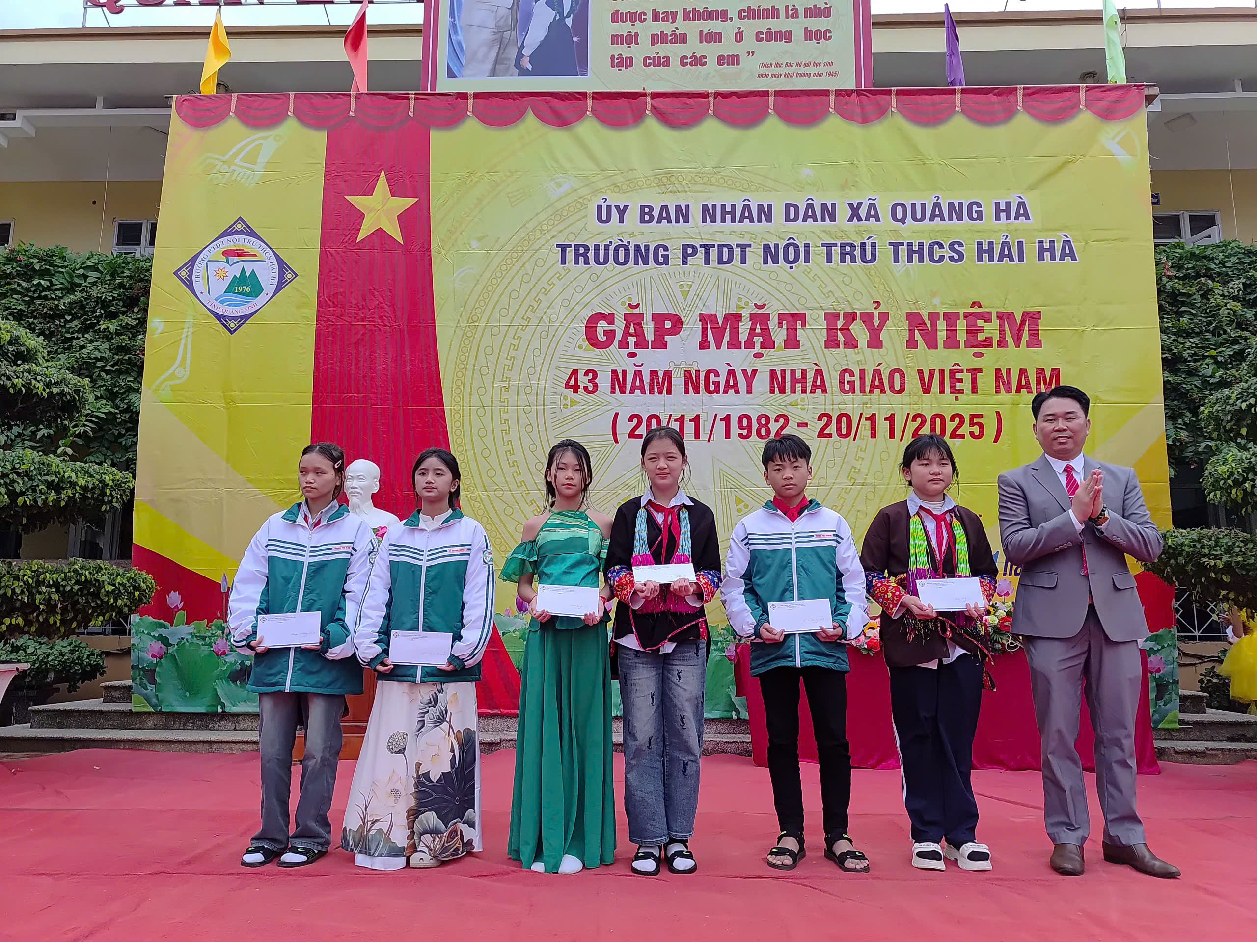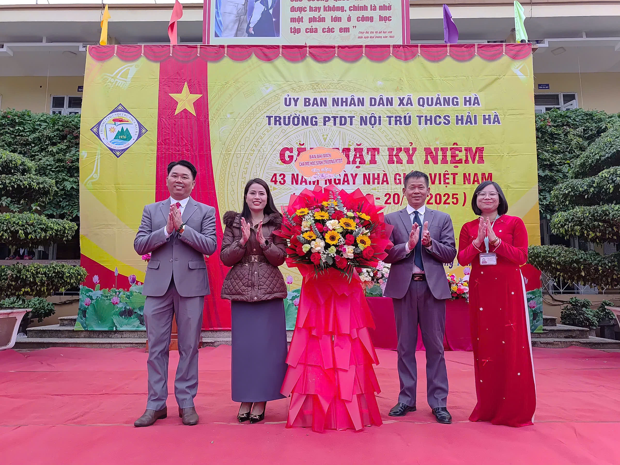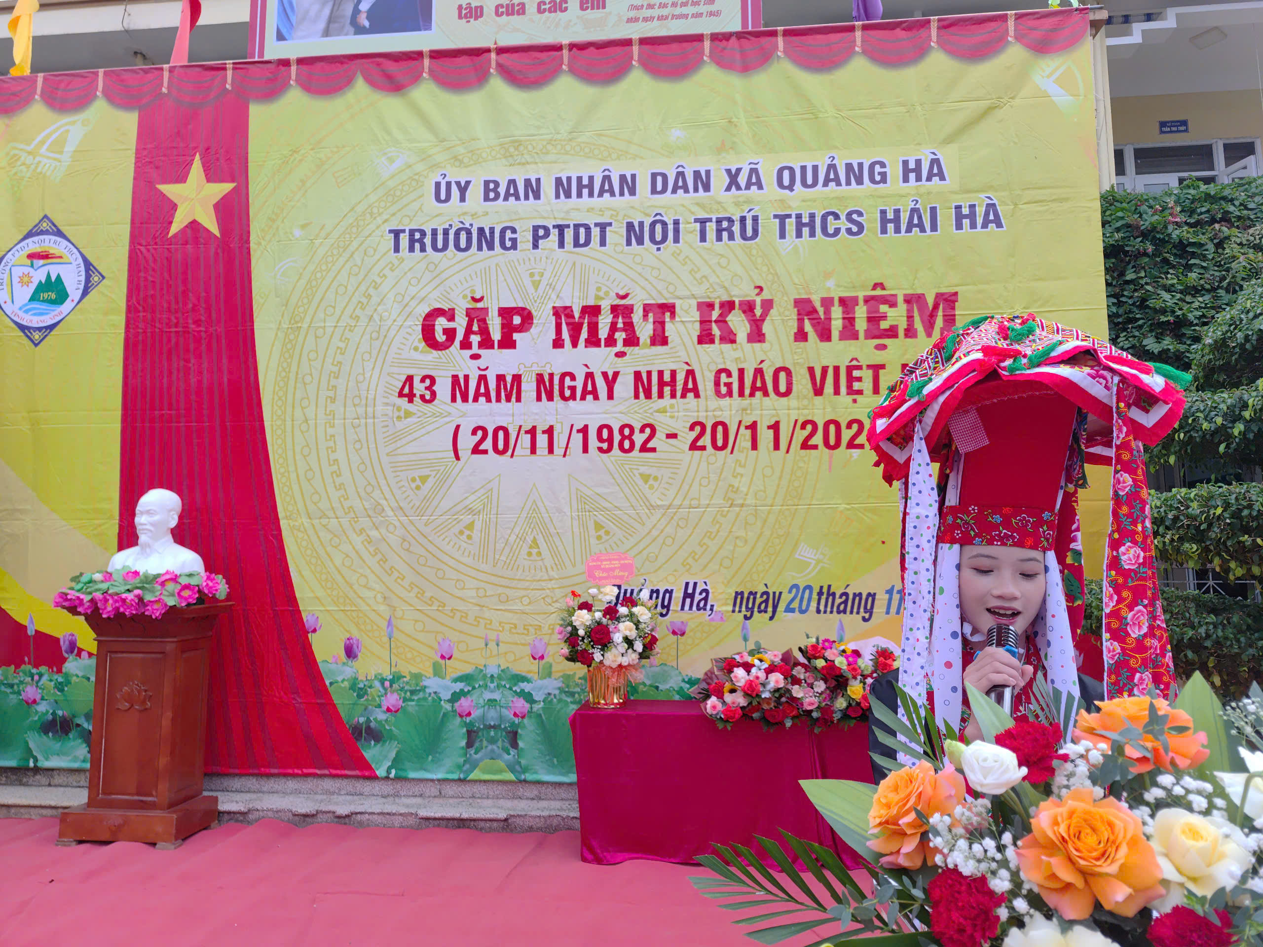 Hòa trong không khí hân hoan của cả nước hướng về Ngày Nhà giáo Việt Nam 20/11, sáng ngày 20/11/2025, tập thể cán bộ, giáo viên, nhân viên và học sinh Trường PTDTNT THCS Hải Hà long trọng tổ chức buổi gặp mặt kỷ niệm 43 năm Ngày Nhà giáo Việt Nam – ngày hội lớn của những người làm công tác giáo dục và cũng là dịp để tri ân, tôn vinh những người đã và đang cống hiến thầm lặng cho sự nghiệp “trồng người” cao quý.