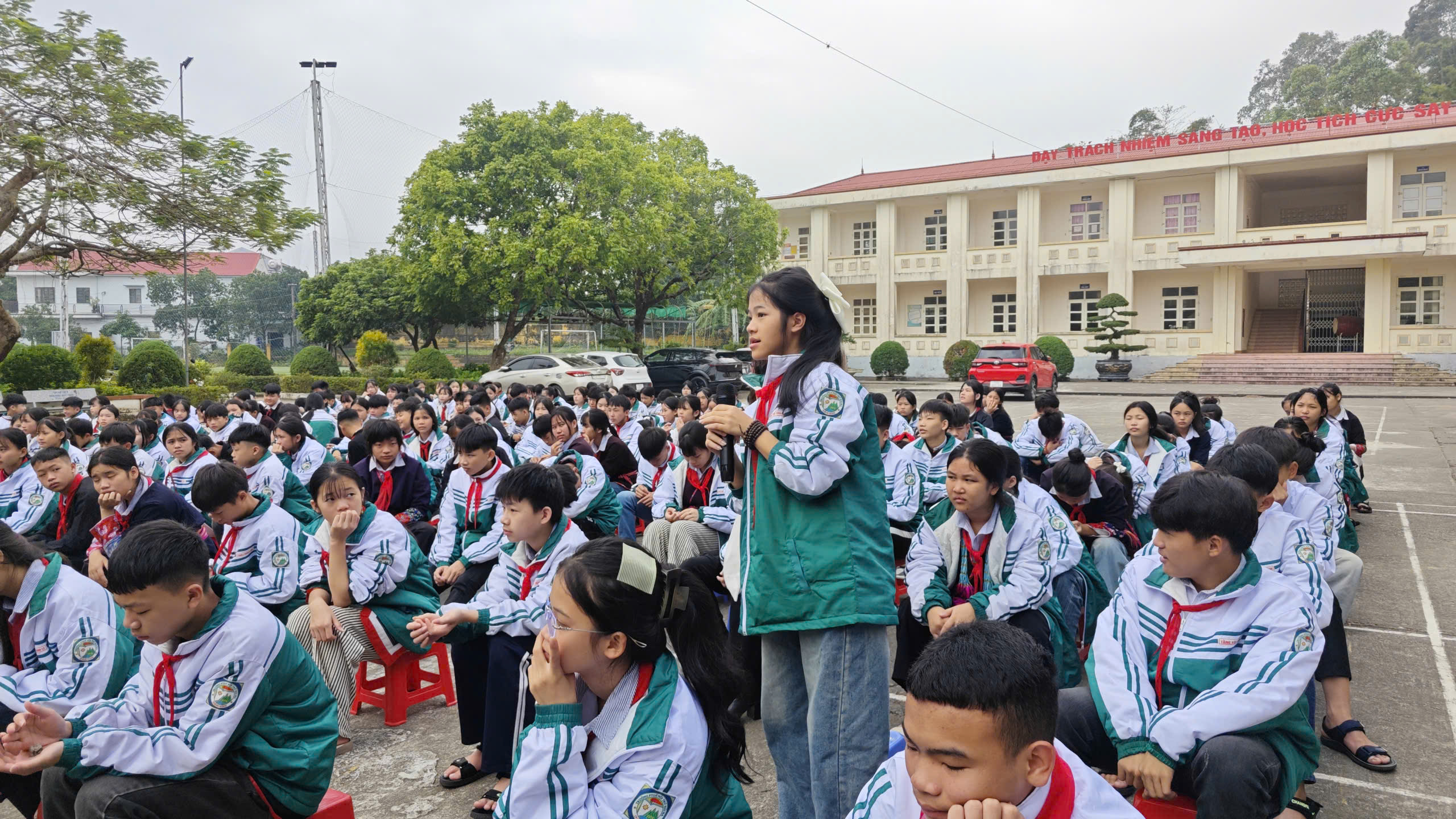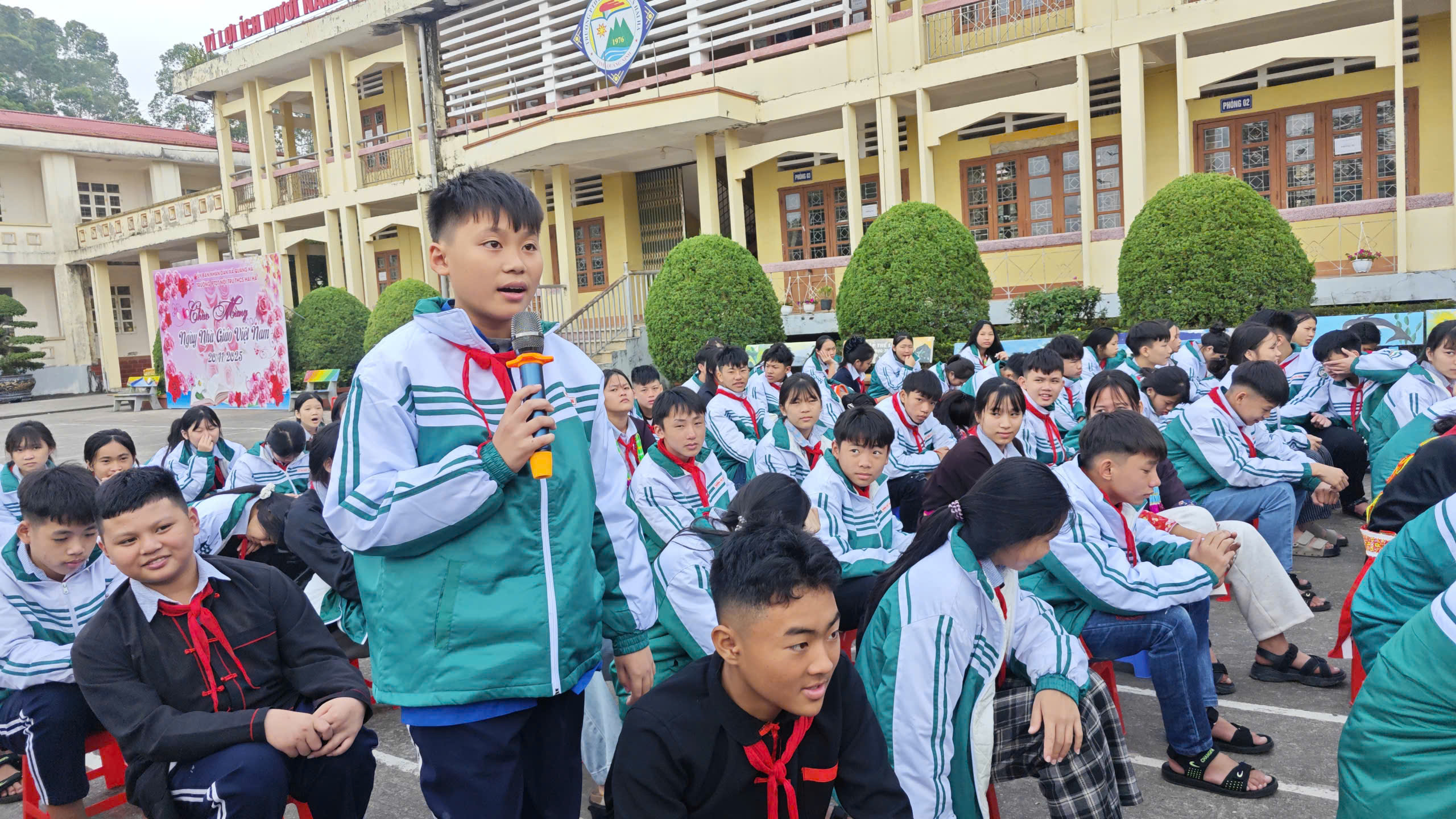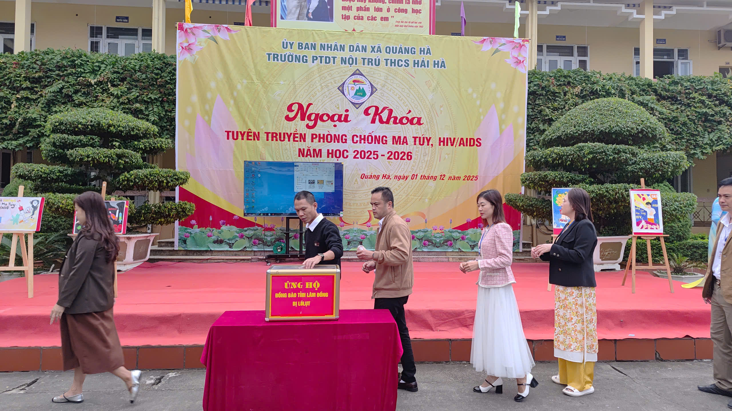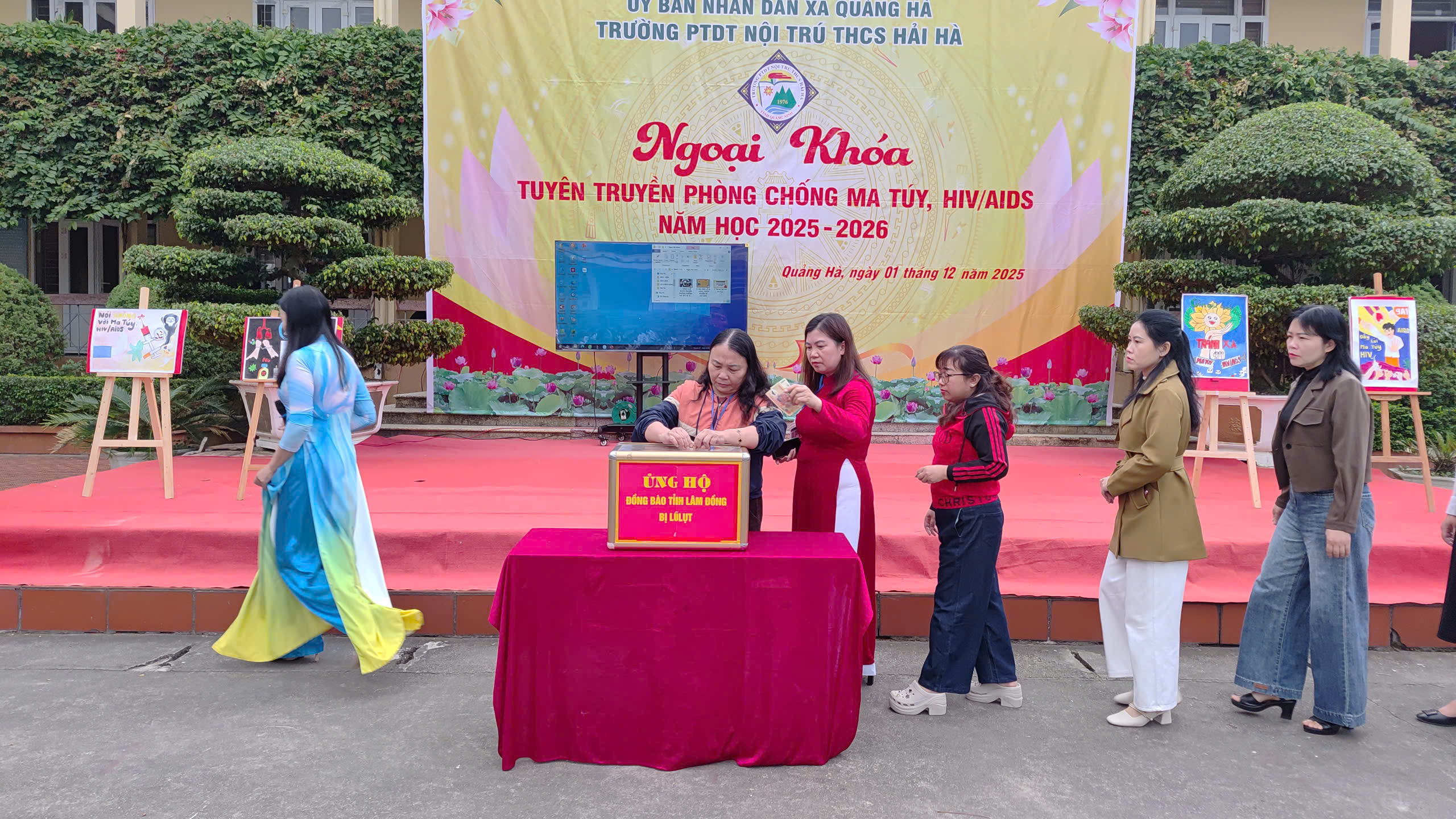 Hưởng ứng Tháng hành động quốc gia phòng, chống HIV/AIDS năm 2025 và Ngày Thế giới phòng, chống AIDS 01/12, sáng ngày 01/12/2025, Liên đội Trường PTDTNT THCS Hải Hà đã tổ chức hoạt động ngoại khóa tuyên truyền phòng chống ma túy, HIV/AIDS với sự tham gia đầy đủ của cán bộ, giáo viên, nhân viên và toàn thể học sinh nhà trường.