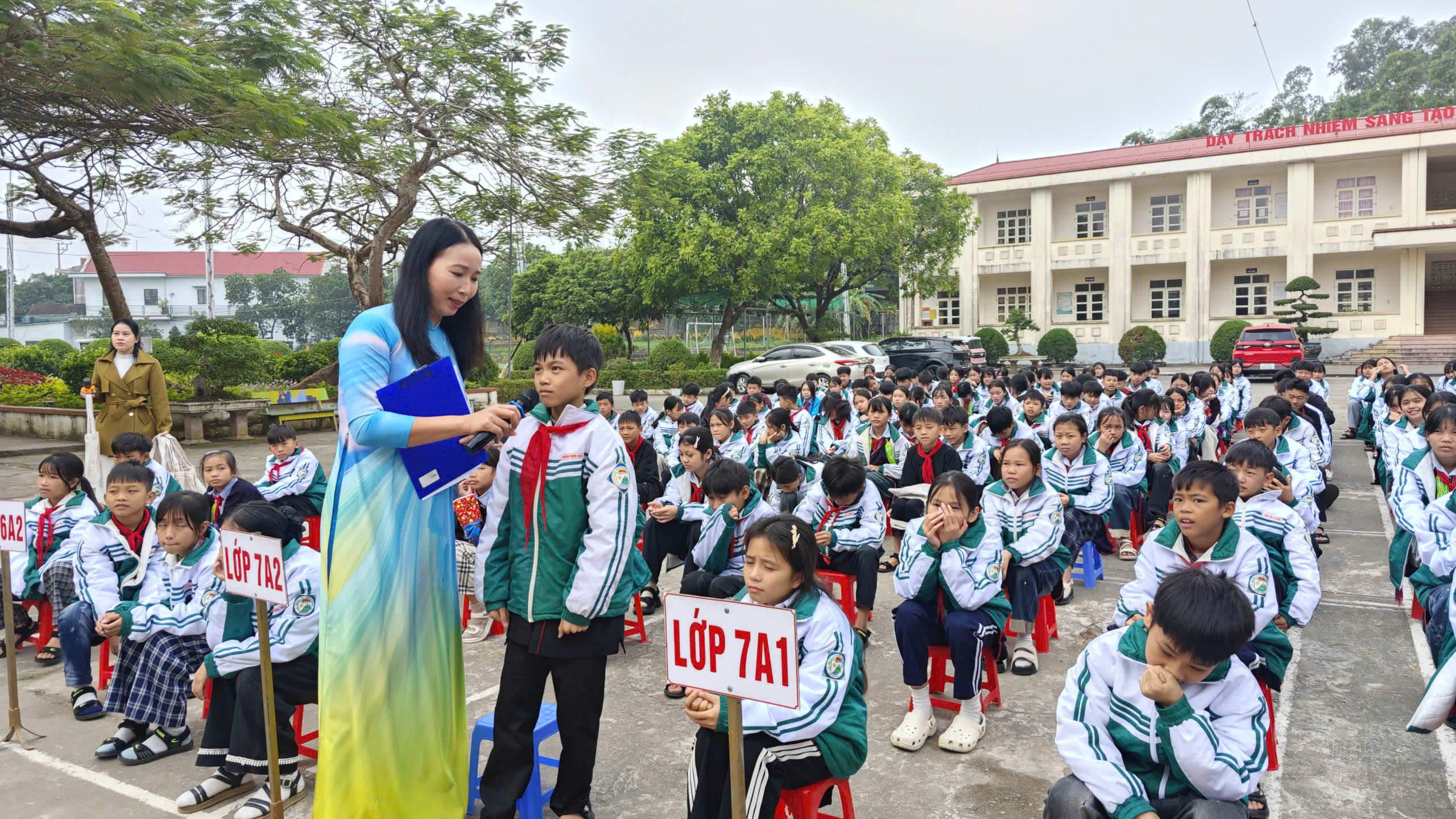 Cũng tai buổi ngoại khóa nhà trường đã phát động tới cán bộ, giáo viên, nhân viên và học sinh toàn trường ủng hộ đồng bào bị bão lụt tỉnh Lâm Đồng.