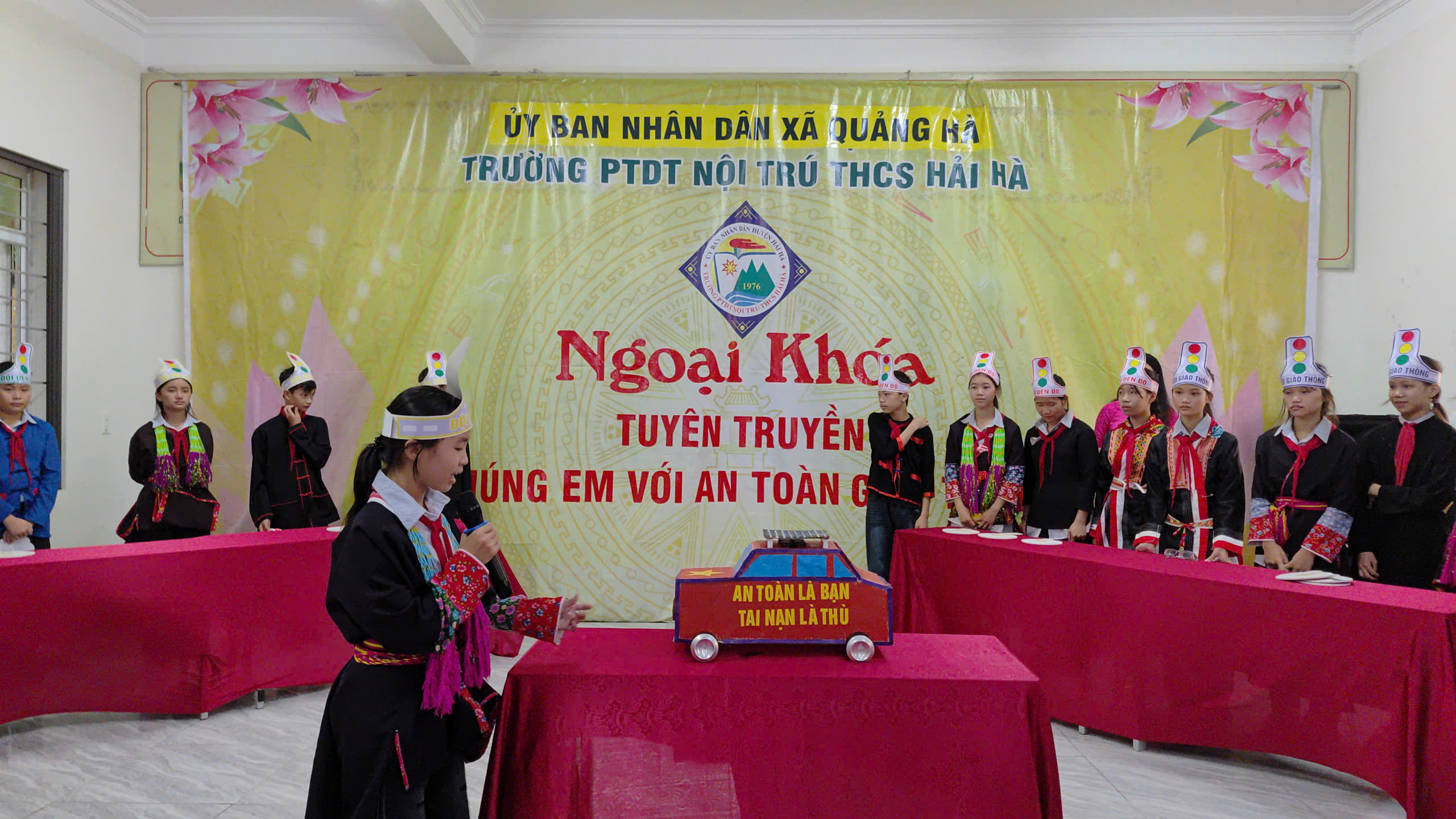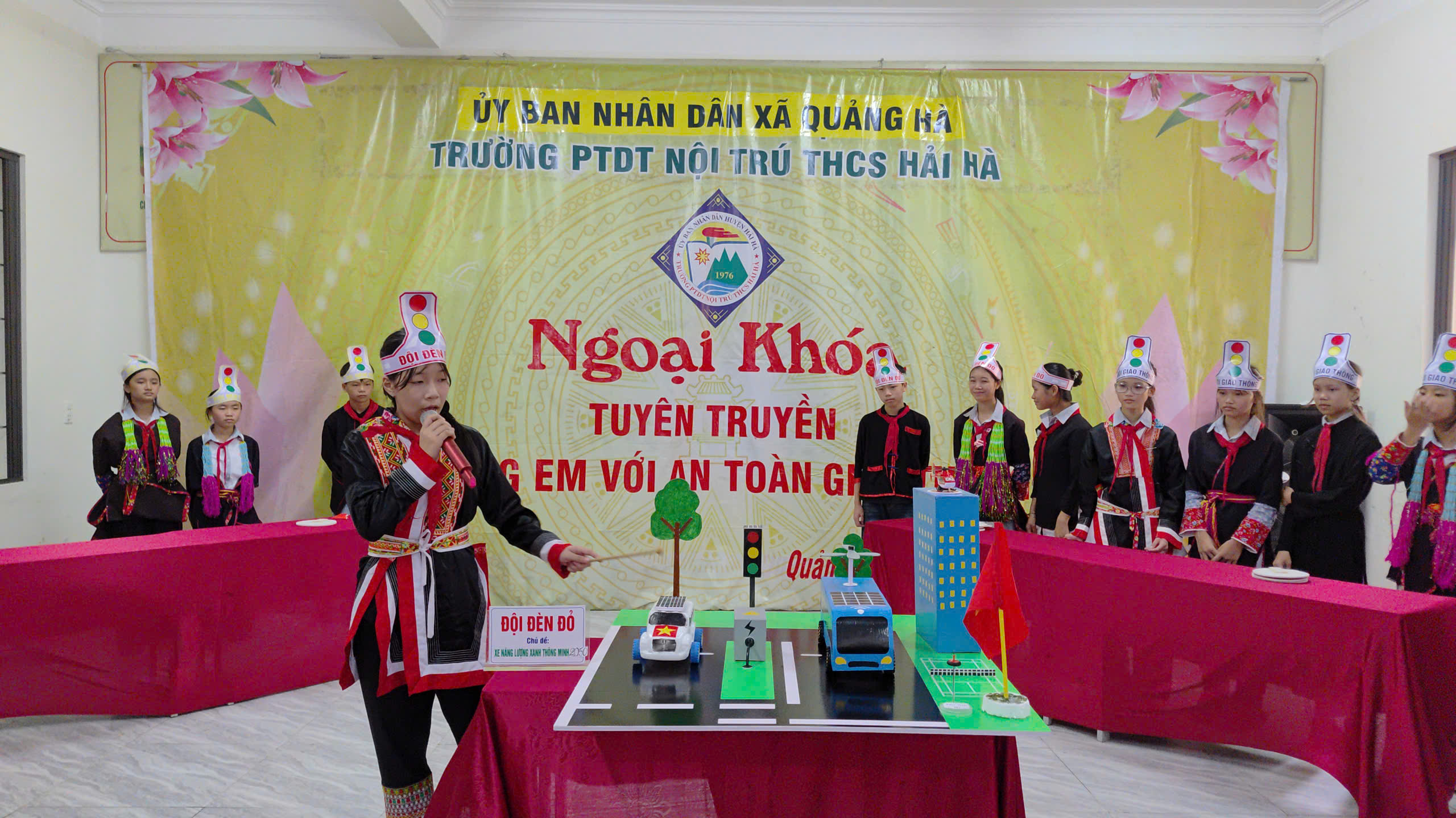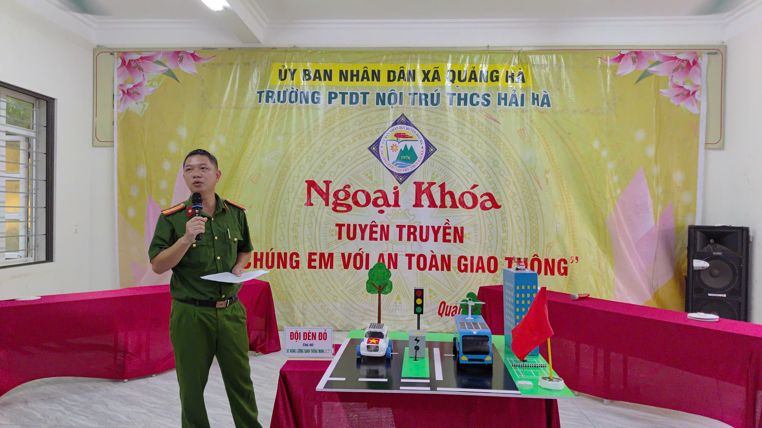 Chương trình có sự tham gia của đại biểu Công an xã Quảng Hà, toàn thể cán bộ, giáo viên cùng 251 học sinh nhà trường. Tại buổi ngoại khóa, các em học sinh đã được nghe Thiếu tá Đặng Ngọc Tuấn, Cán bộ Công an xã Quảng Hà tuyên truyền kiến thức về Luật giao thông đường bộ và tham gia nhiều phần thi bổ ích, hấp dẫn. Bốn đội thi mang tên Giao thông, Đèn đỏ, Đèn vàng, Đèn xanh đã trải qua 3 nội dung: đội mũ bảo hiểm đúng cách; trả lời câu hỏi kiến thức về an toàn giao thông; và sáng tạo mô hình phương tiện giao thông trong tương lai từ vật liệu tái chế. Ngoài ra, các cổ động viên cũng được tham gia trả lời câu hỏi nhanh, tạo nên không khí sôi nổi, hào hứng.