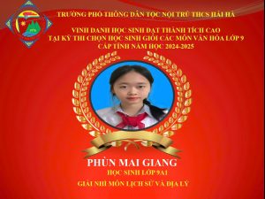 Sau một chặng đường dài ôn luyện, các thầy cô và học sinh của đội tuyển HSG năm học 2024 – 2025 đã vượt qua mọi khó khăn và giành chiến thắng, chinh phục được đỉnh cao tri thức, đem vinh quang thật đáng tự hào về cho nhà trường với 02 giải nhì môn Lịch sử và Địa lý tại Kỳ thi chọn học sinh giỏi các môn văn hóa lớp 9 cấp tỉnh năm học 2024-2025. Nhà trường xin ghi nhận và Vinh danh những đóng góp to lớn của các thầy cô giáo ôn luyện đội tuyển và thành tích đáng tự hào của những học sinh đạt giải học sinh giỏi cấp tỉnh. Những thành tích mà thầy và trò đạt được là sự nỗ lực phấn đấu không ngừng nghỉ trong học tập, rèn luyện của các em học sinh; sự cố gắng rất lớn của đội ngũ giáo viên ôn luyện; sự đóng góp đầy trách nhiệm và động viên tinh thần của gia đình, tổ chức trong suốt quá trình dạy học, rèn luyện các em trong đội tuyển.